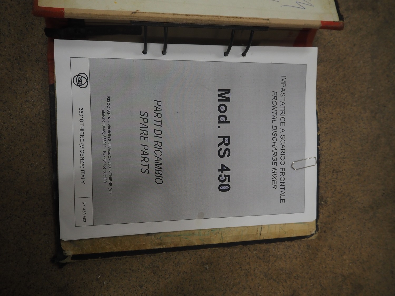 Risco S.p.a. double shaft paddle mixer, model Risco: RS 450, serial number: 0672, year of construction: 1992, volume: 450 liter, dimensions: 1600 mm x 1200 mm x 1600 mm.