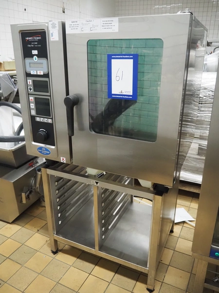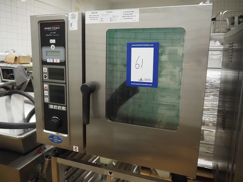 Henny Penny combi steamer, model: LCS 6, serial number: E61CD01091053235, 400 V, 3 Ph, 50/60 Hz, water pressure: 200/600 kPa, 6 floors, floor dimensions: 535 mm x 330 mm, total dimensions: 900 mm x 850 mm x 1580 mm.
