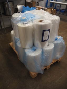 Pallet with 18 rolls of plastic film, film width: 422 mm.