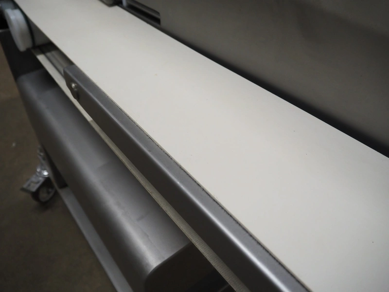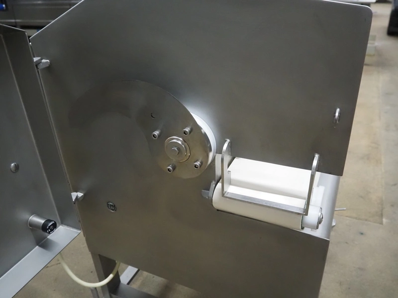 Dadaux slicer, type: TX114 ML, number: TTX114ML-8451, year of construction: 01/19, 400 V, 50 Hz, plastic belt, belt width: 160 mm, total dimensions: 1650 mm x 700 mm x 1100 mm.