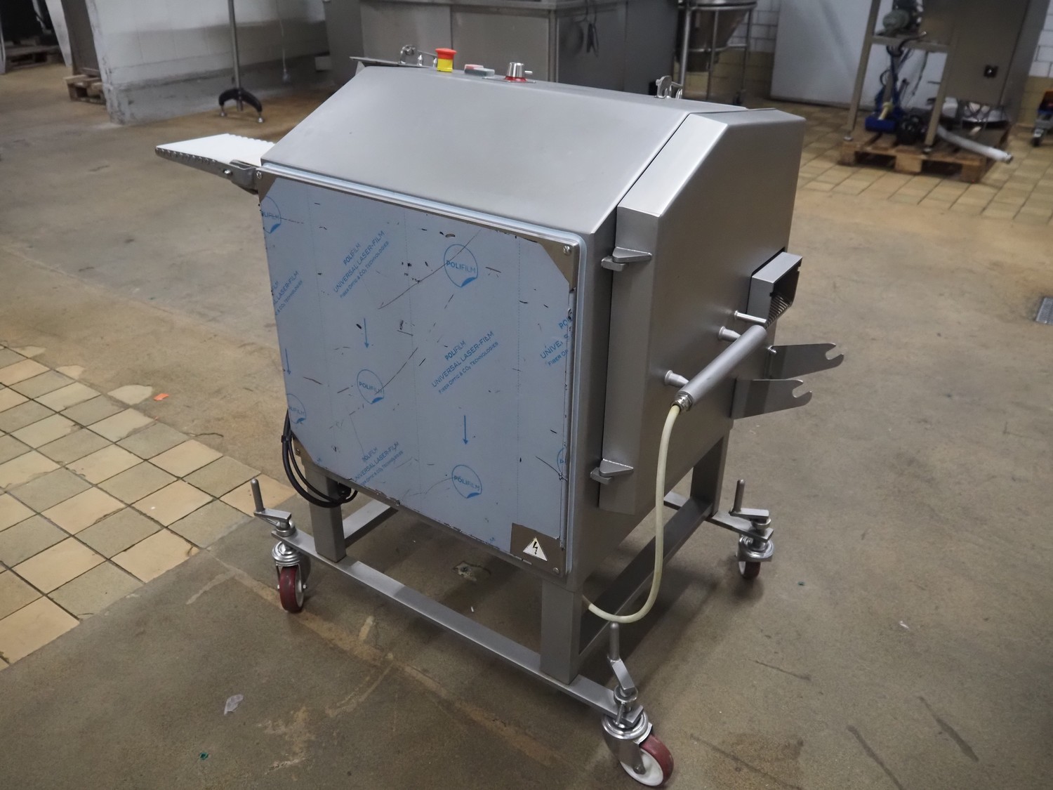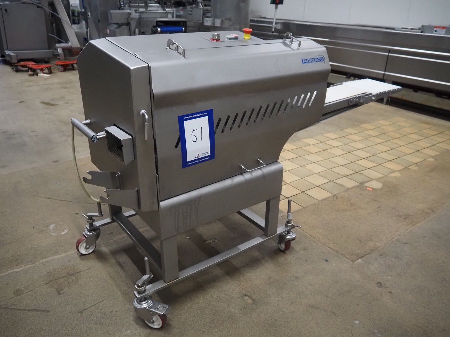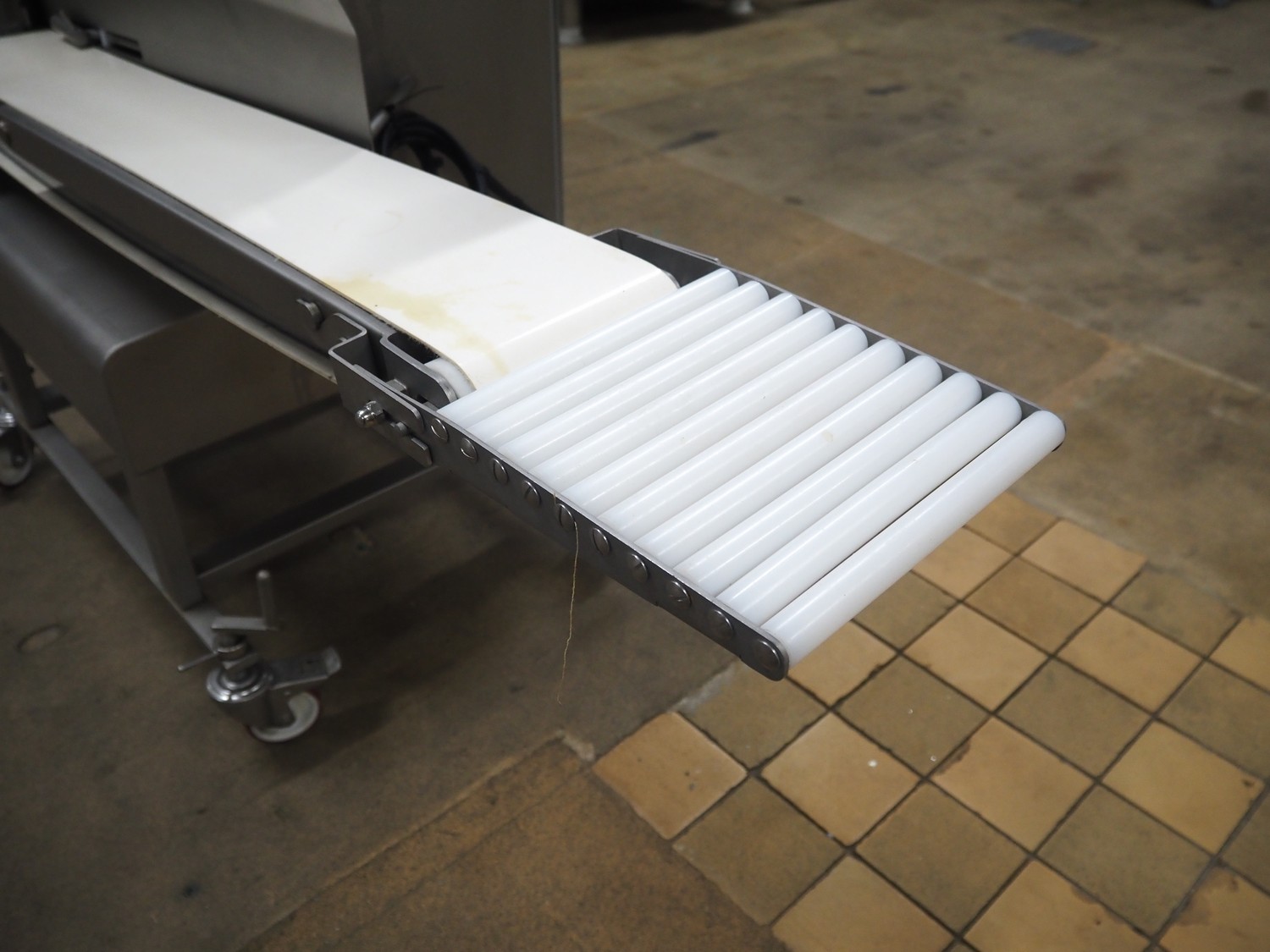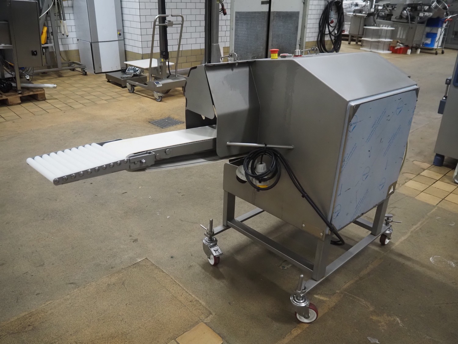 Dadaux slicer, type: TX114 ML, number: TTX114ML-8451, year of construction: 01/19, 400 V, 50 Hz, plastic belt, belt width: 160 mm, total dimensions: 1650 mm x 700 mm x 1100 mm.