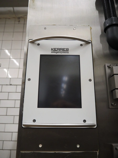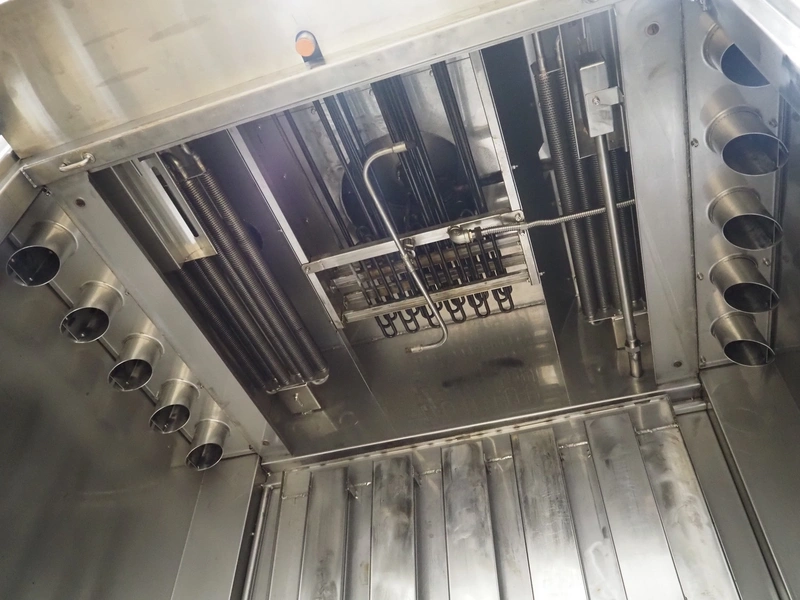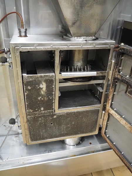 Kerres smoking chamber with integrated smoke generator for wood chips, inside dimensions: 1040 mm x 940 mm x 1605 mm, total dimensions: 1700 mm x 1350 mm x 2450 mm.