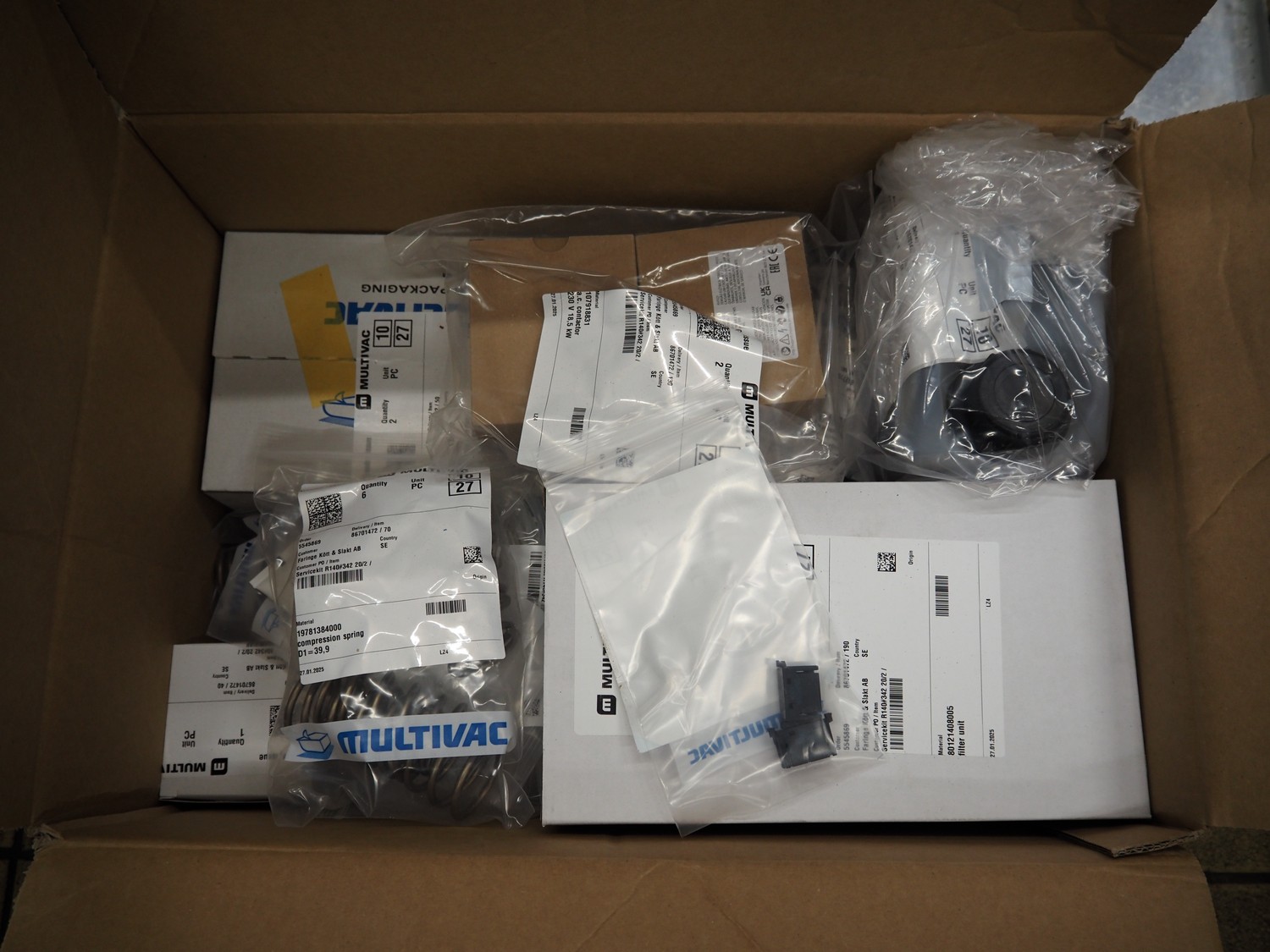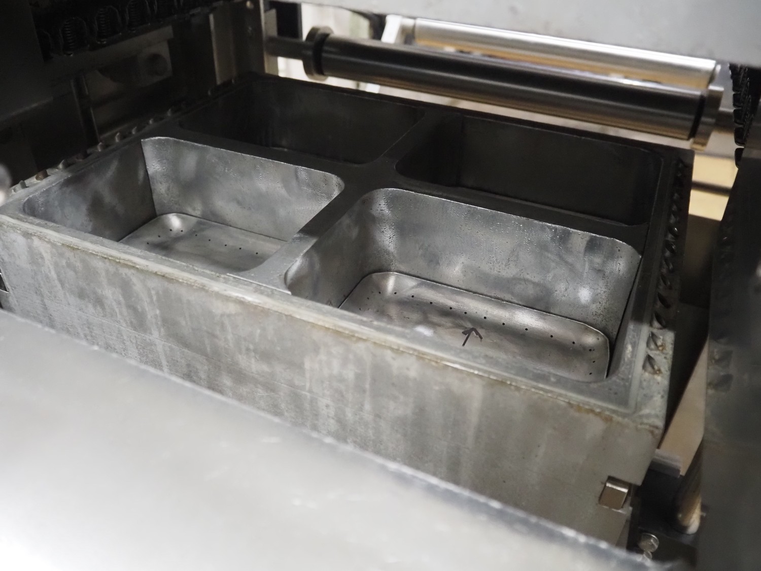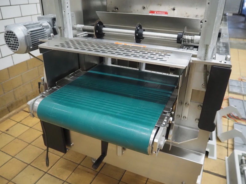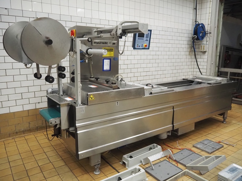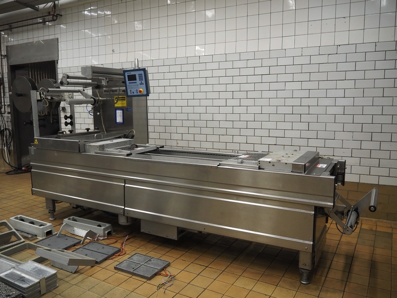 Multivac thermoformer, type: R140, machine number: 342, year of construction: 2005, 400 V, 3 Ph, 50 Hz, 22 A, 7.5 kW, dye: (4x) 130 mm x 175 mm, plastic outfeed belt, belt width: 380 mm, with Busch vacuum pump, type: RA 0100 B, total dimensions: 4000 mm x 1050 mm x 1900 mm. Including large amount of parts, extra dye sets, dimensions: 283 mm x 365 mm, (2x) 283 mm x 175 mm.