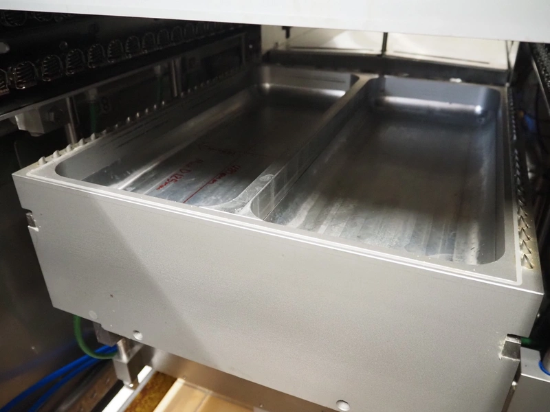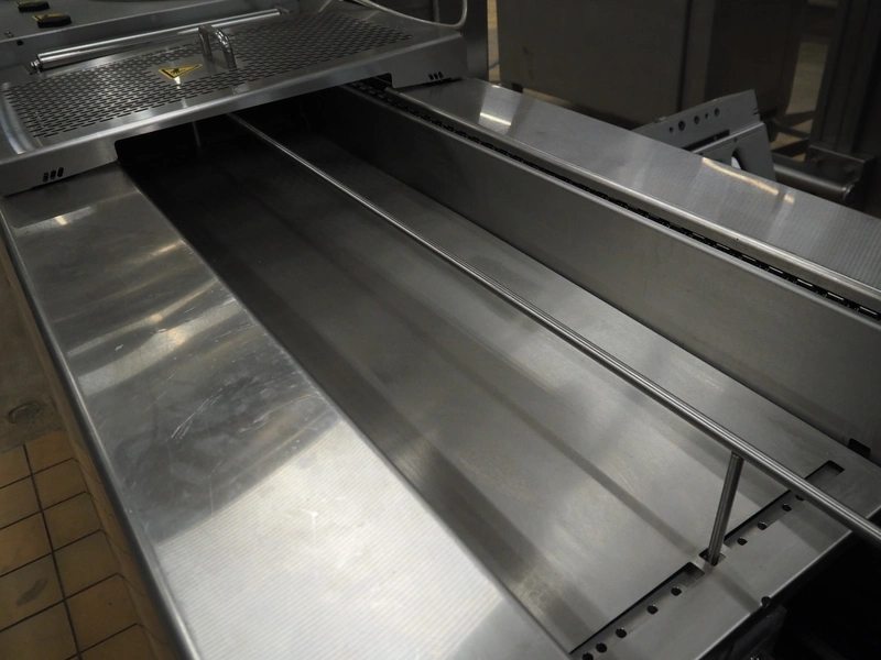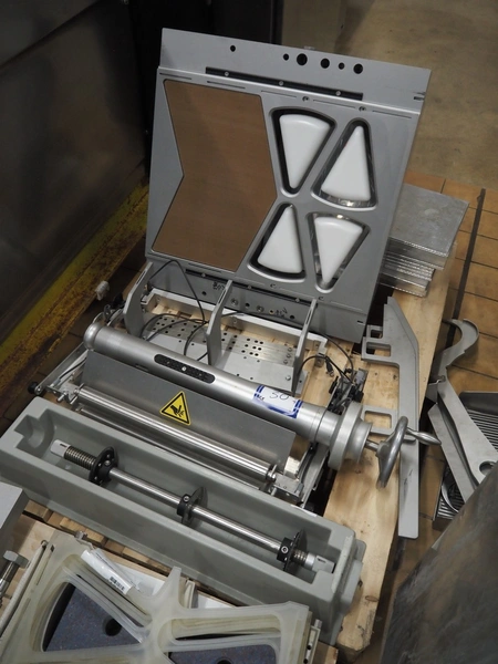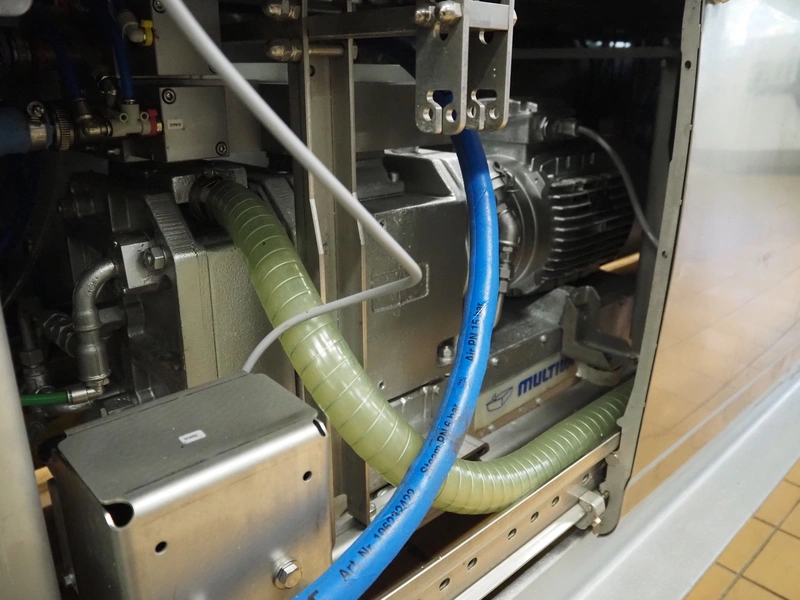 Multivac thermoformer, type: R145, serial number: 256275, year of construction: 2017, 400/230 V, 3 Ph, 50 Hz, 41/50 A, 13 kW, index: 460 mm, bottom film width: 463 mm, top film width: 460 mm, dimensions dye: (2x) 495 mm x 200 mm, plastic mesh outfeed belt, belt width: 420 mm, total dimensions: 7100 mm x 1150 mm x 2250 mm. Including 4 pallets with parts, among others: form for cheese, dimensions form: 190 mm x 150 mm, extra dye: (4x) 235 mm x 195 mm, total dimensions pallets (1x) 1900 mm x 1100 mm x 1000 mm and (3x) 1200 mm x 800 mm x 500 mm.