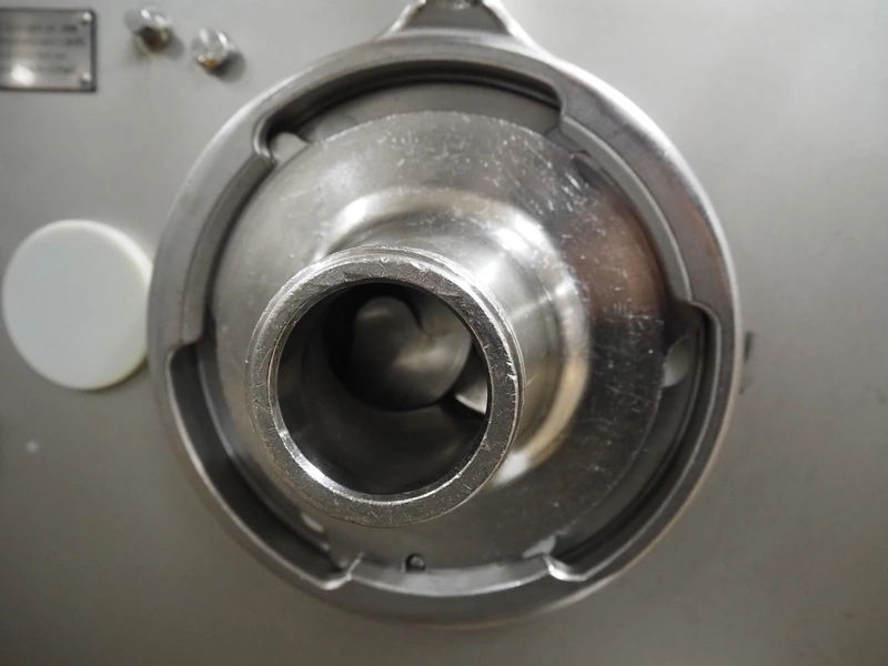 Vemag vacuum filling machine with lifter for 200 liter meat bins, model: HP10E, number: 1610495, year of construction: 2011, 220/240 V, 3 Ph, 50/60 Hz, 21 A, 14 kW, dimensions: 1860 mm x 1350 mm x 2030 mm. Without vacuum pump.