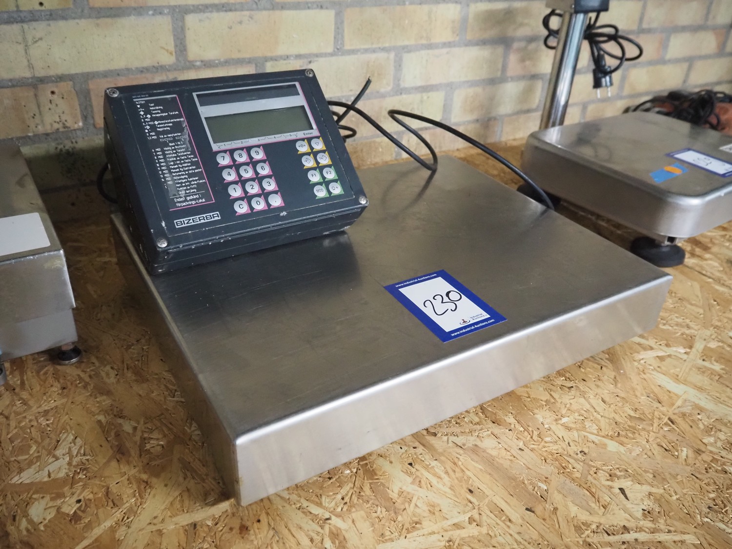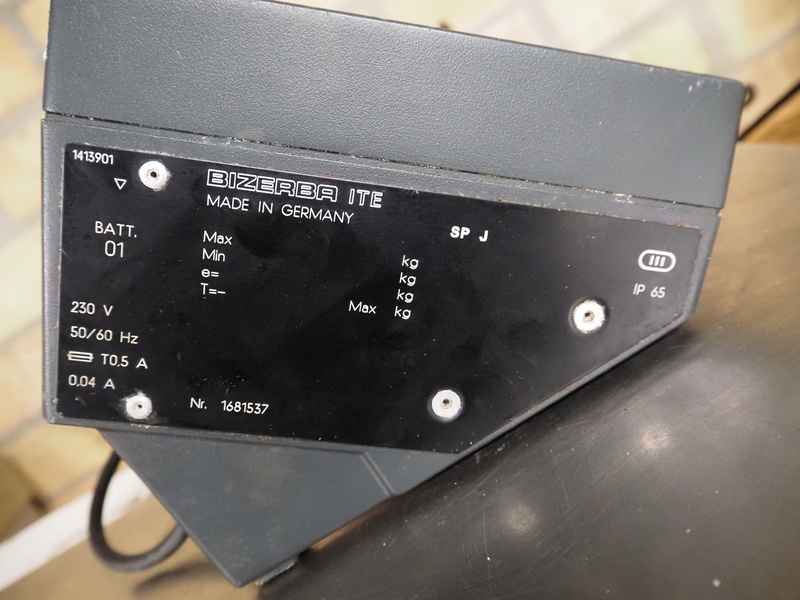 Bizerba weighing scale, type: SP J, 230 V, 50/60 Hz, 0.04 A, dimensions: 500 mm x 400 mm x 100 mm.