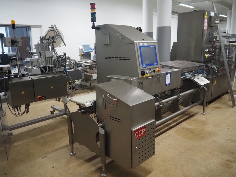Mettler-Toledo Garvens GmbH X-ray scanner with checkweigher and 2 rejectors, model: XS 3 Advancheck, serial number: 37000028, year of construction: 2011, 100/240 V, 1 Ph, 50-60 Hz, maximum capacity: 1200 g, minimum capacity: 7 g, e=d= 1 g, plastic belts, belt width: 280 mm, 300 mm, and 400 mm, clearance: 350 mm x 150 mm, total dimensions: 3000 mm x 1350 mm x 2100 mm.
