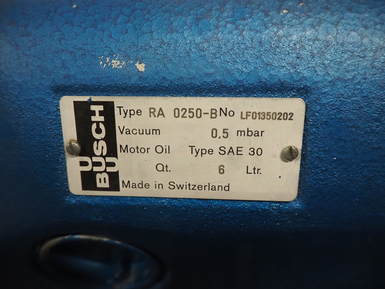 Busch vacuum pump, type: RA 0250-B, number: LF01350202, dimensions: 970 mm x 570 mm x 1150 mm.