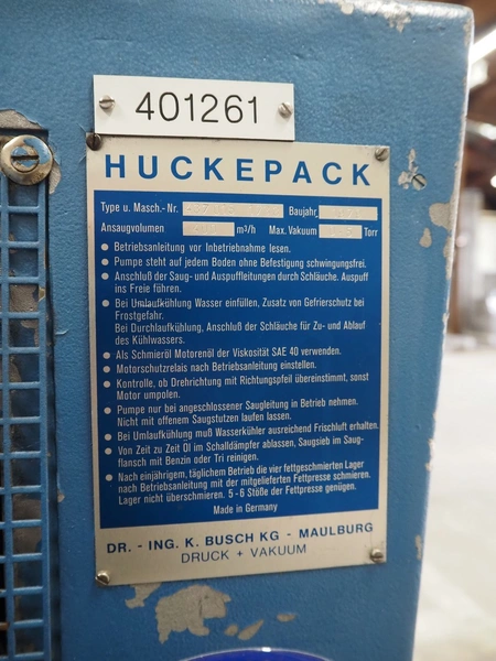 Huckepack vacuum pump, type: 437 015, number: 1733, year of construction: 1979, 400 m³ per hour, dimensions: 1510 mm x 750 mm x 950 mm.