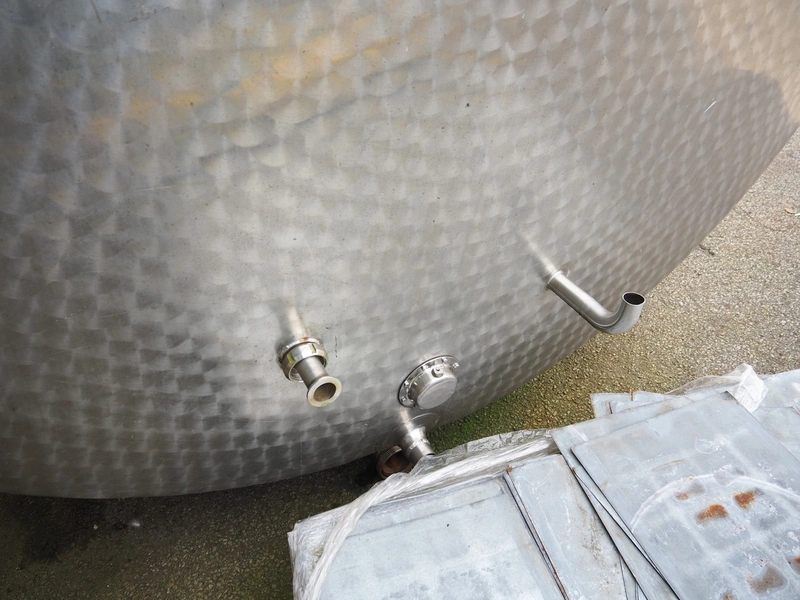 S/s double jacketed tank, inside dimensions: Ø 2400 mm x 5000 mm, total dimensions: 2550 mm x 5300 mm.