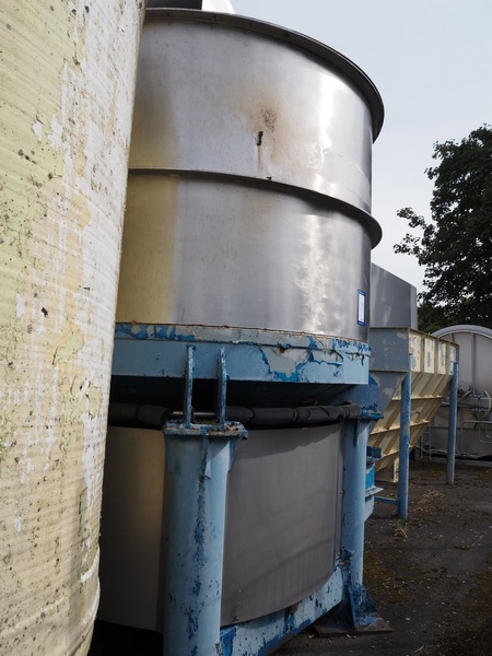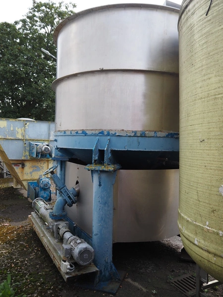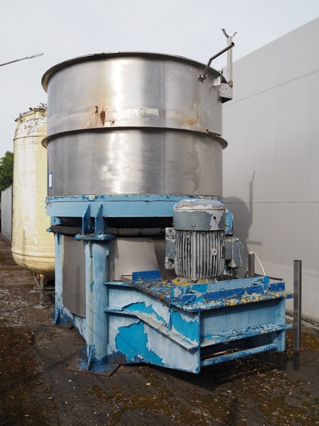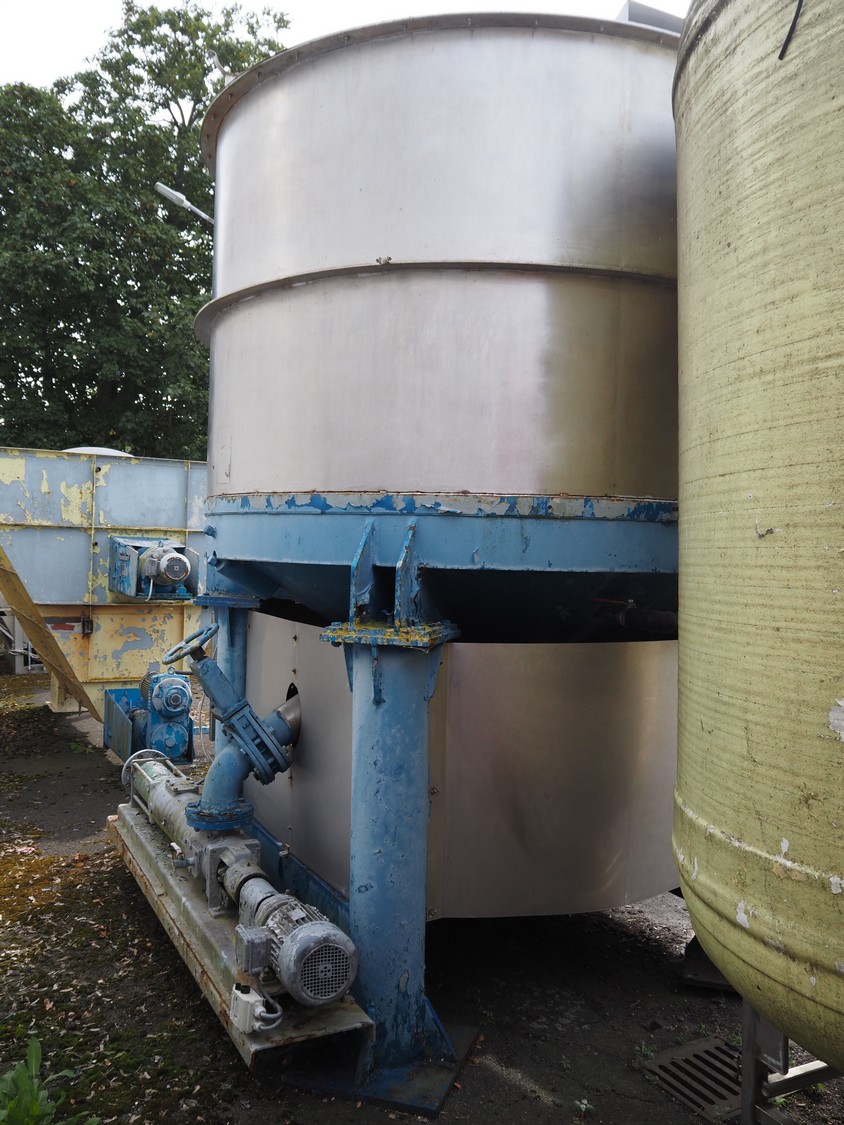 Ponndorf Maschinenfabrik GmbH s/s mixing tank, type: K-M 7, serial number: 15549, year of construction: 1982, with FFD Wien motor, type: DPIG250M/8/4, 34/49 kW, and outfeed pump with Nord motor, inside dimensions mixer: 2500 mm x 2500 mm x 1700 mm, total dimensions: 3600 mm x 2800 mm x 4100 mm.