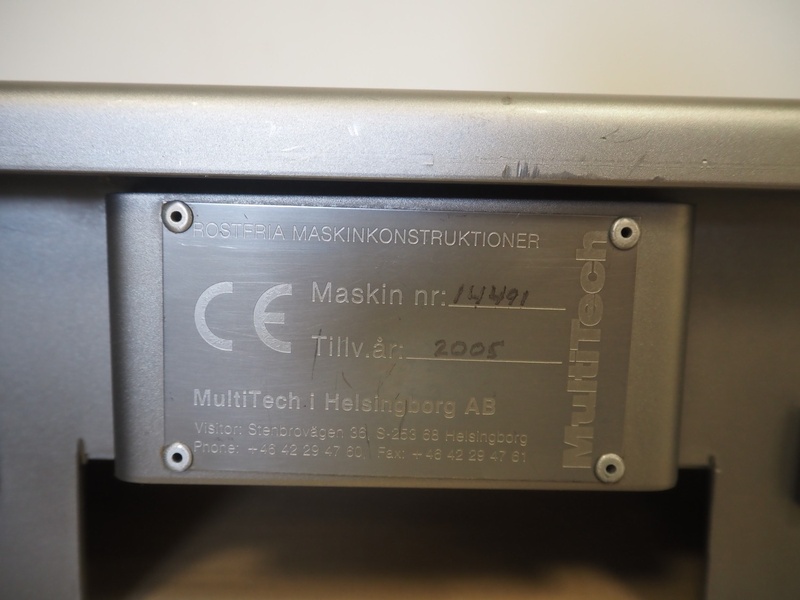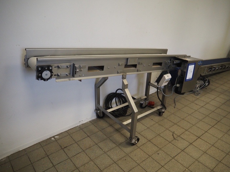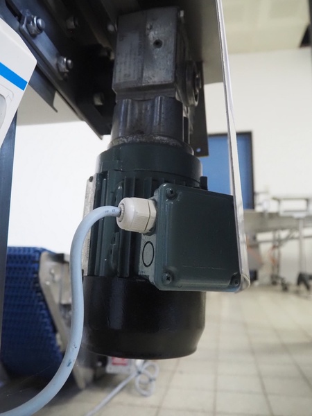 MultiTech mobile elevating belt, number: 14491, year of construction: 2005, plastic belt, belt width: 225 mm, elevating height: 950 mm, total dimensions: 1750 mm x 660 mm x 1040 mm.
