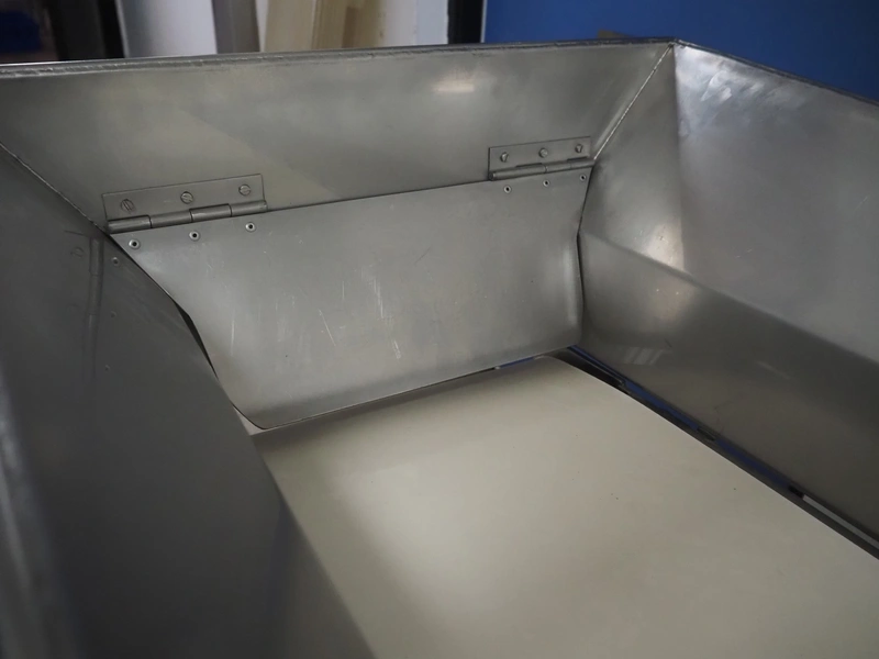 Mobile elevating belt, s/s frame, plastic belt, belt width: 260 mm, elevating height: 1030 mm, total dimensions: 3950 mm x 550 mm x 1150 mm.