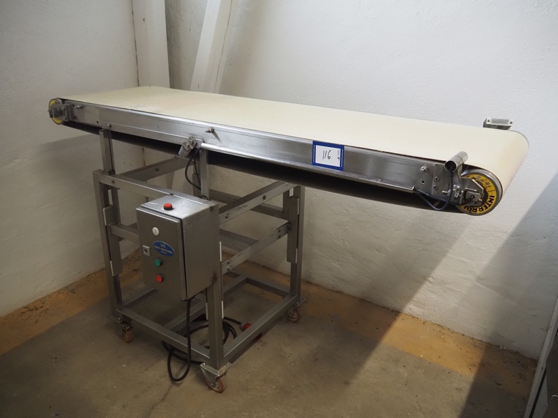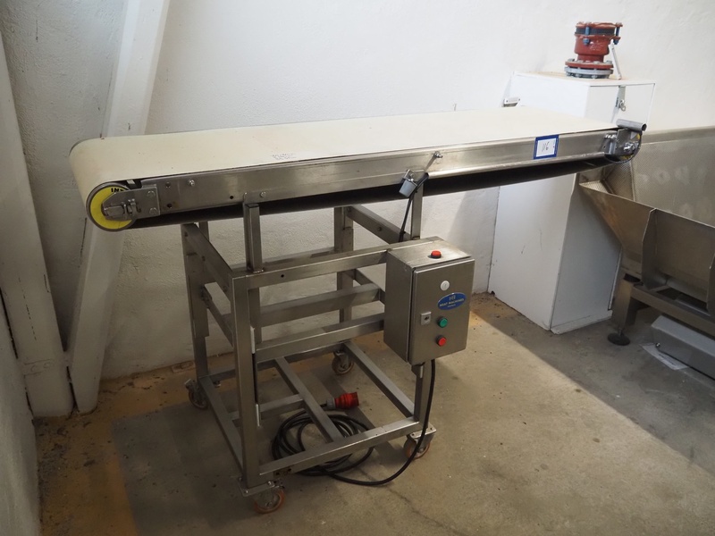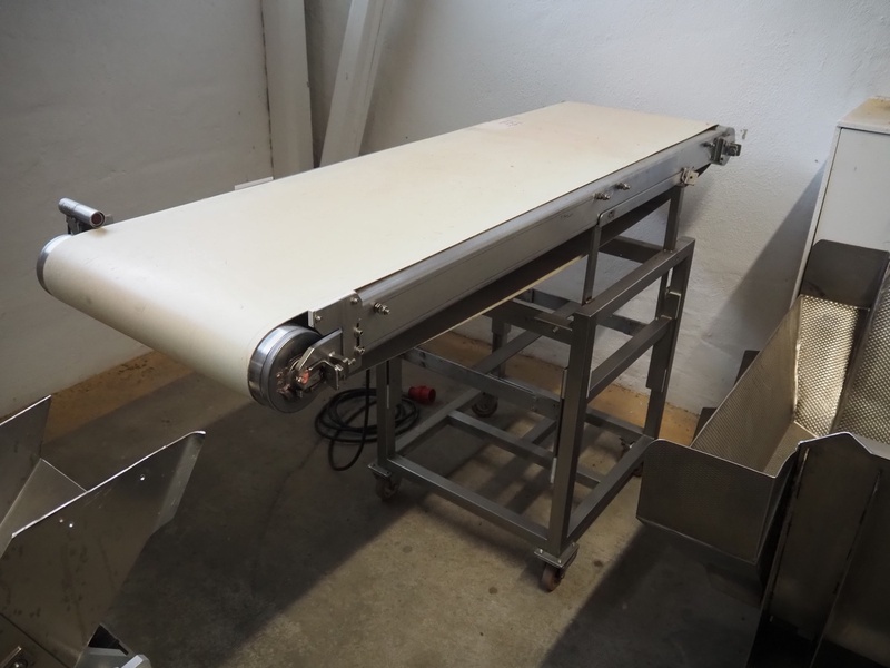 Mobile transport belt, s/s frame, plastic belt, belt width: 500 mm, total dimensions: 1810 mm x 800 mm x 1150 mm.