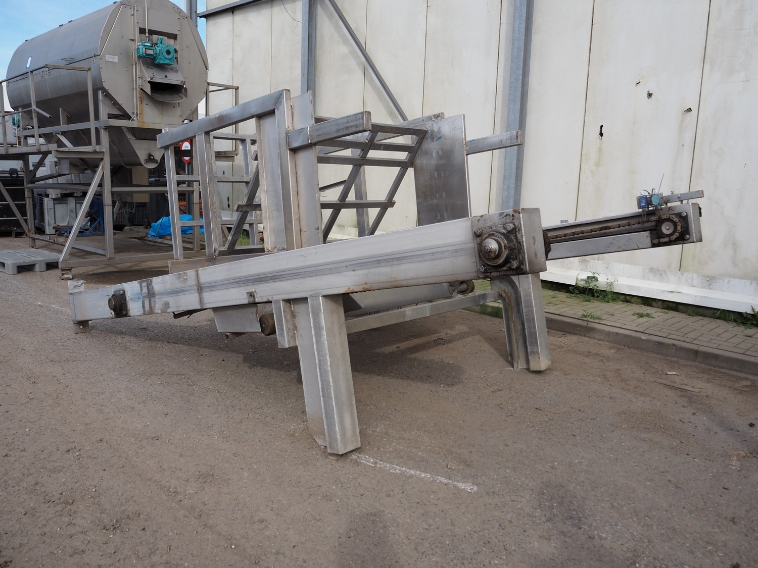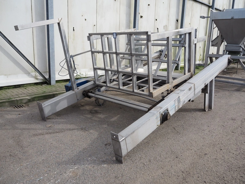 S/s lifter for boxes, dimensions elevating compartment: 1480 mm x 1070 mm x 1400 mm, elevating height: 3200 mm, total dimensions: 1900 mm x 3100 mm x 4450 mm.
