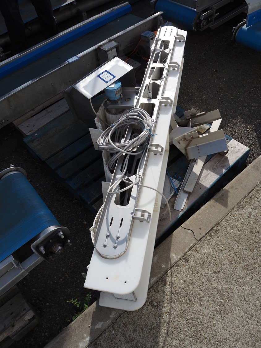 Komatech B.V. elevating belt, type: Horizontale vakkenband, serial number: 18649, year of construction: 2024, plastic belt with dividers, belt width: 250 mm, distance between dividers: 440 mm, divider height: 80 mm, total dimensions: 2150 mm x 500 mm x 900 mm.