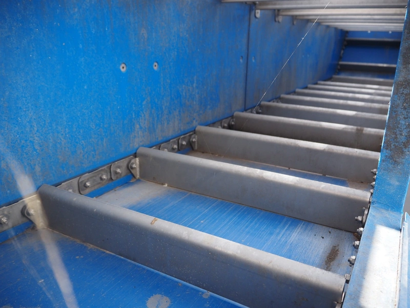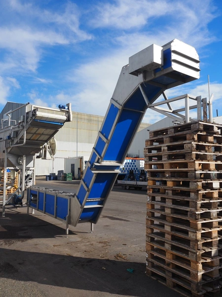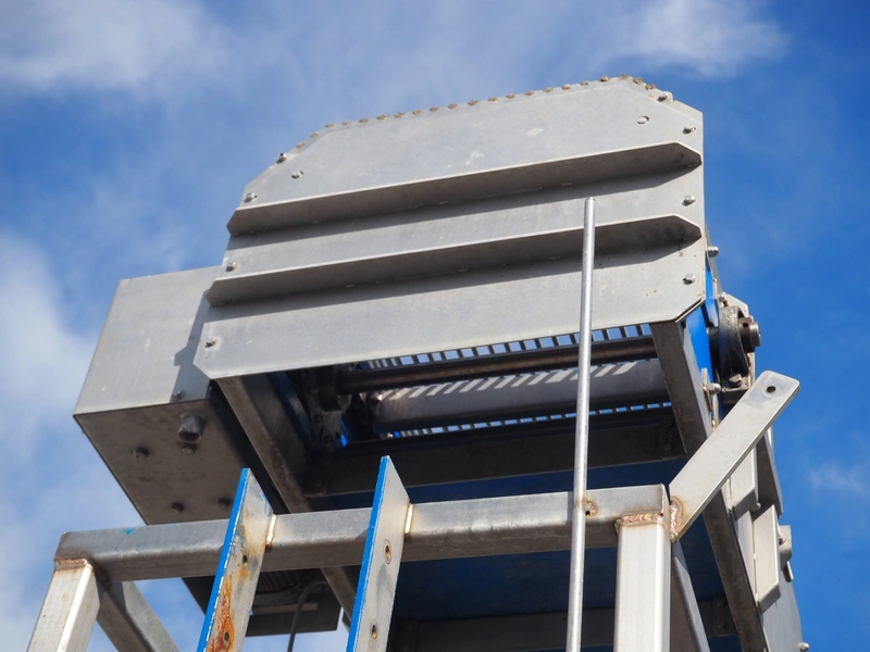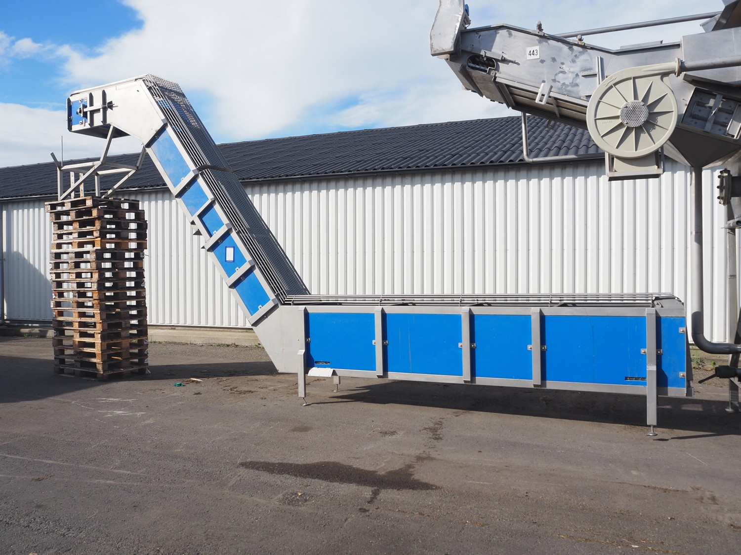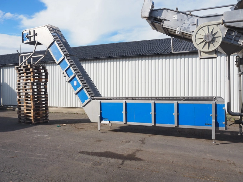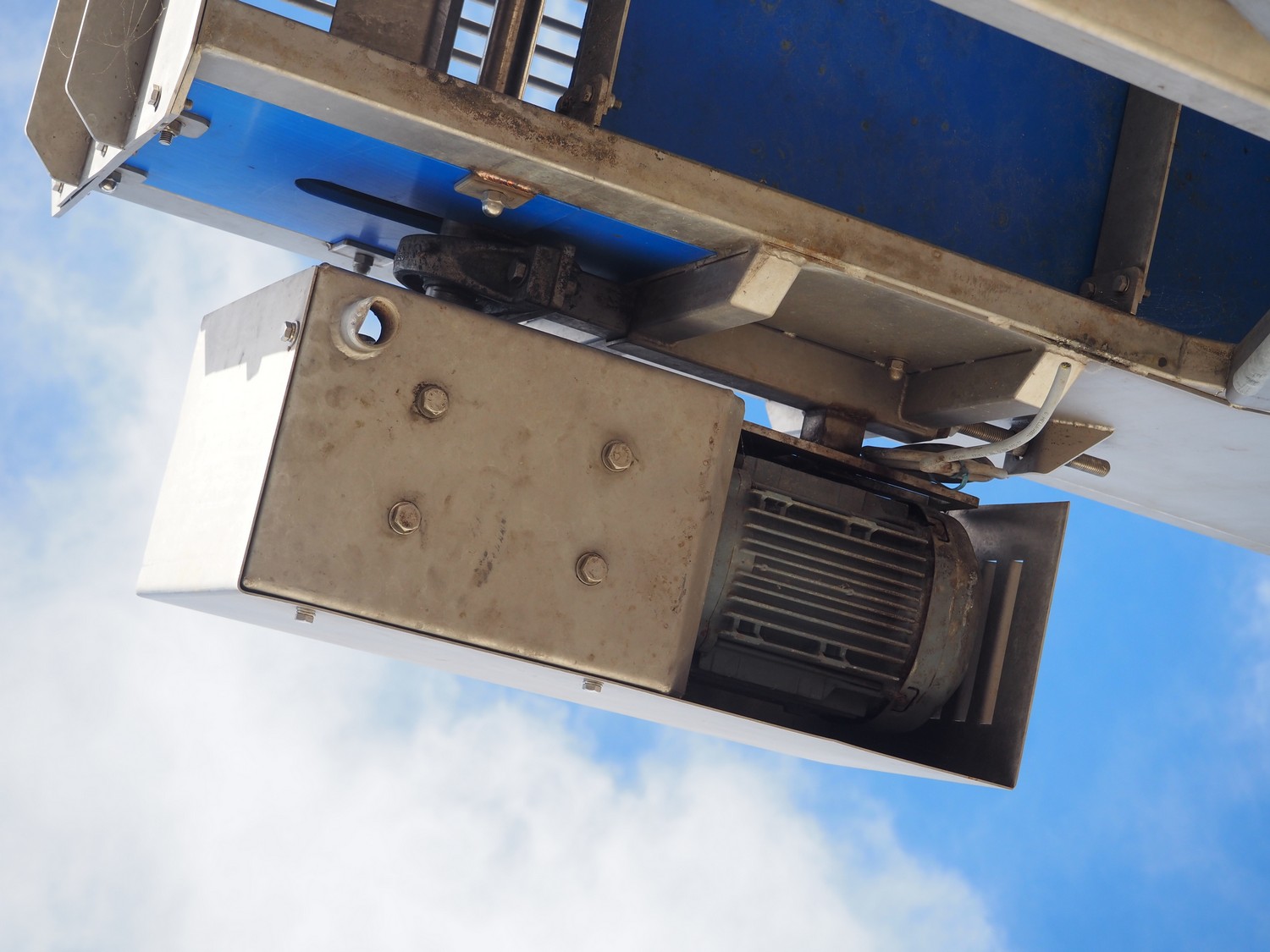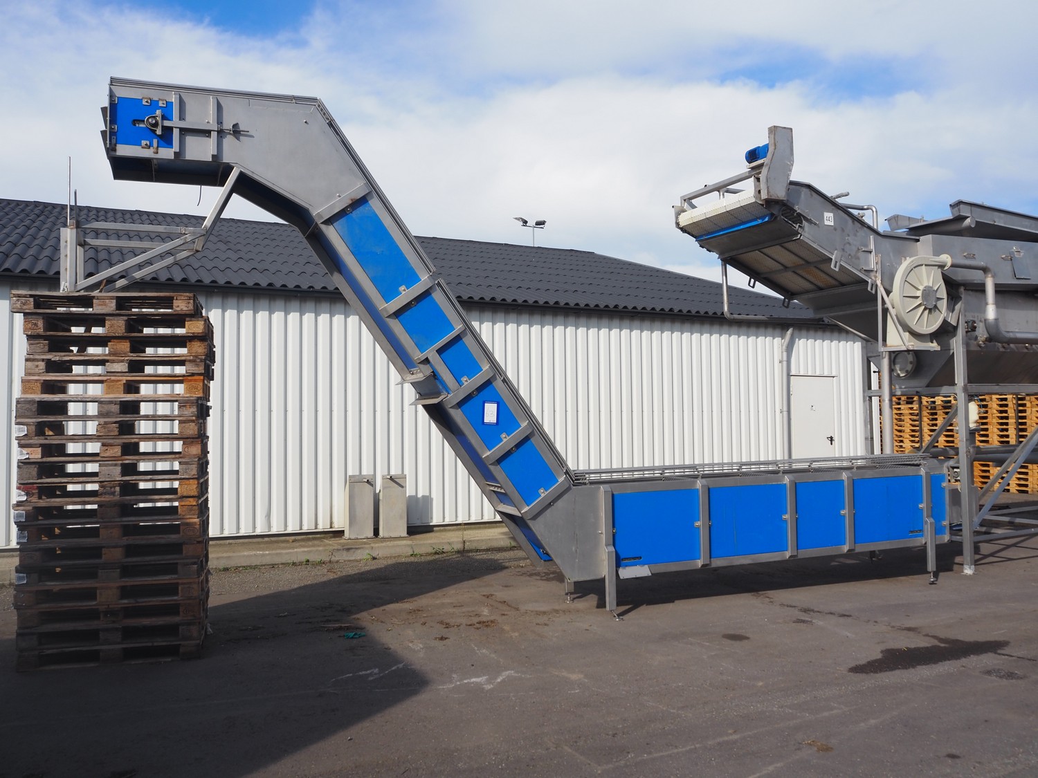Elevating belt, inside dimensions tub: 4000 mm x 600 mm x 700 mm, elevating height: 3800 mm, total dimensions: 8100 mm x 1100 mm x 4100 mm.