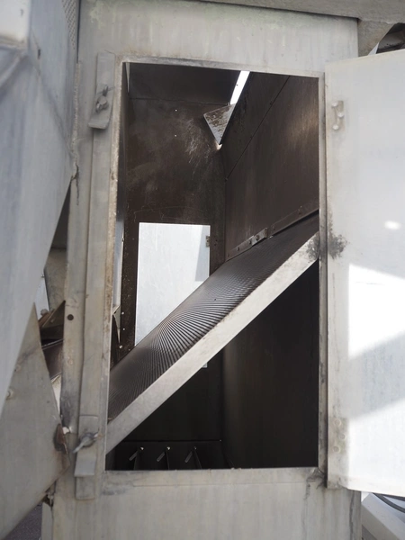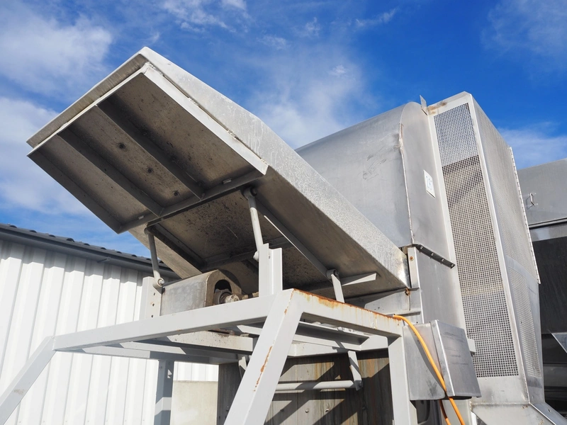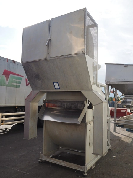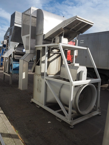 Dirt separator for leafy vegetables, gutter width: 1150 mm, total dimensions: 2500 mm x 2350 mm x 3700 mm.