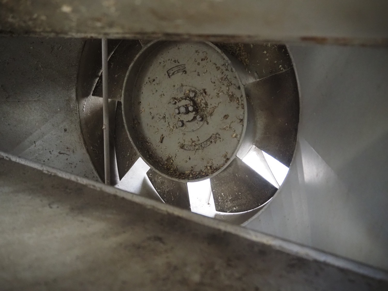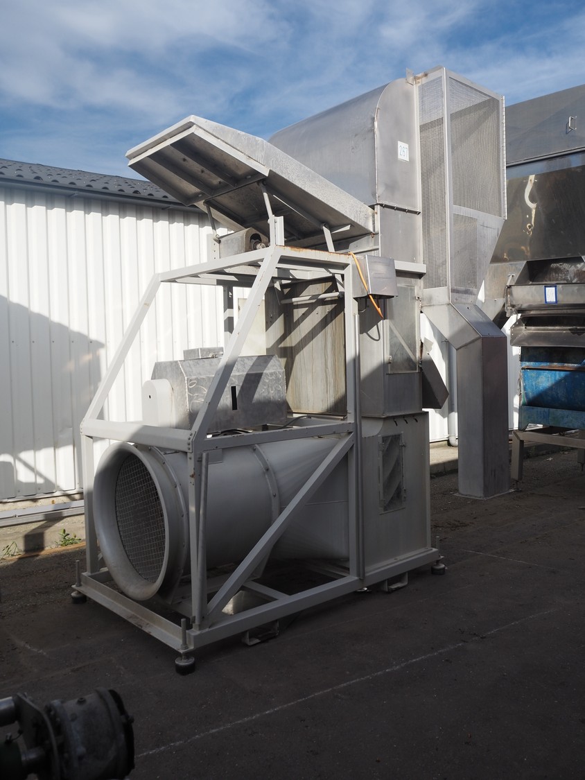 Dirt separator for leafy vegetables, gutter width: 1150 mm, total dimensions: 2500 mm x 2350 mm x 3700 mm.