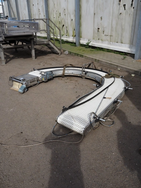 Komatech B.V. 180° curve conveyor, type: Schakel bochtband, serial number: 18648, year of construction: 2024, plastic mesh belt, belt width: 450 mm, total dimensions: 2600 mm x 2900 mm x 300 mm.