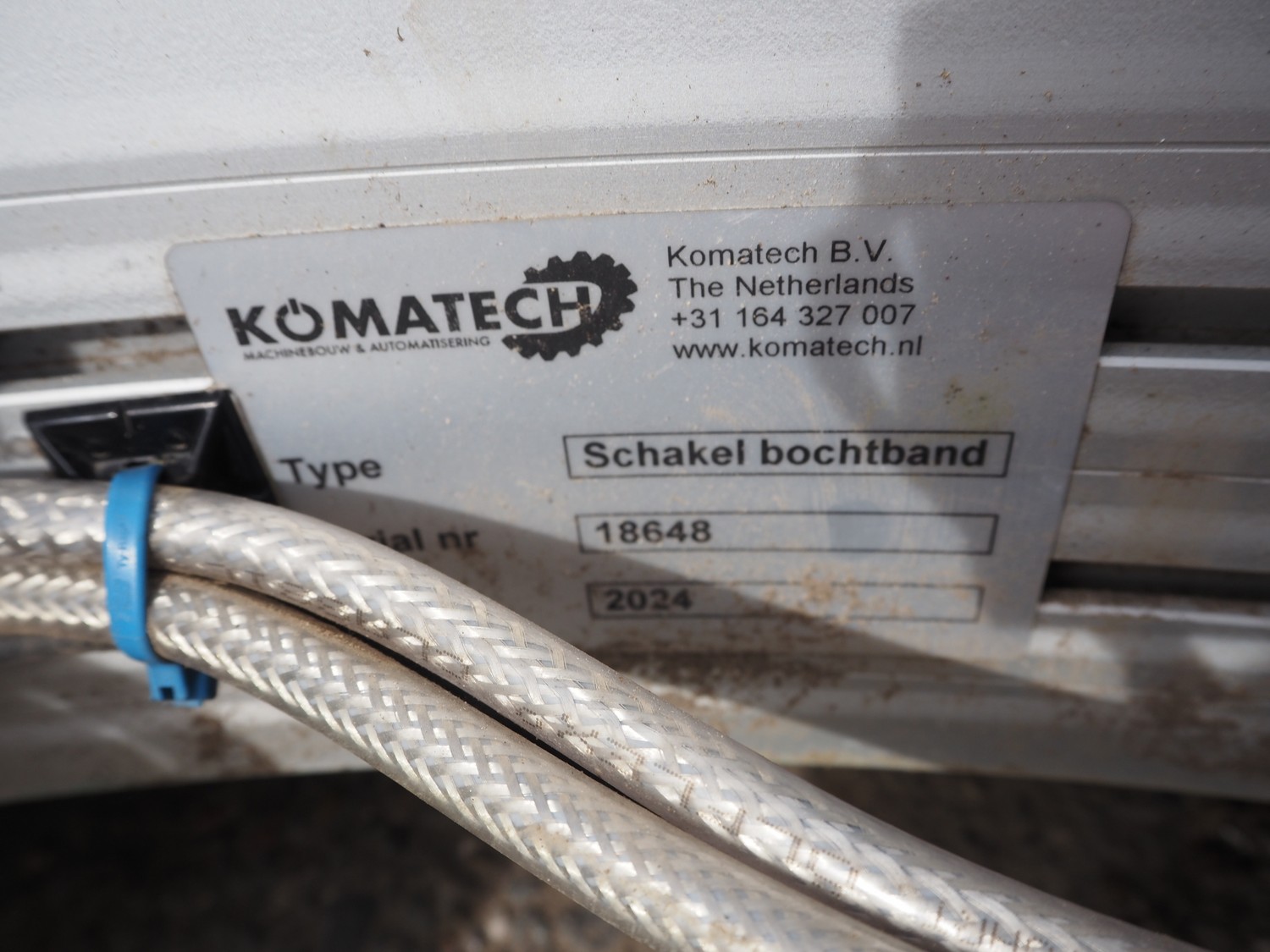 Komatech B.V. 180° curve conveyor, type: Schakel bochtband, serial number: 18648, year of construction: 2024, plastic mesh belt, belt width: 450 mm, total dimensions: 2600 mm x 2900 mm x 300 mm.