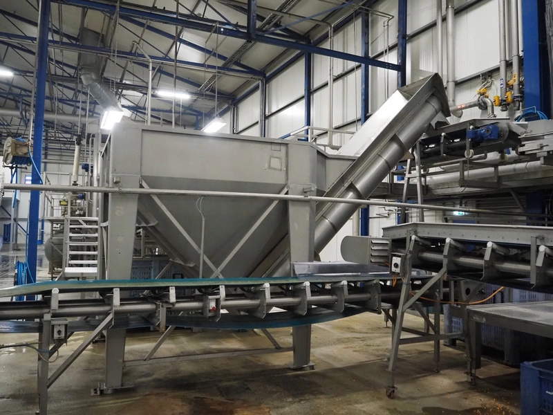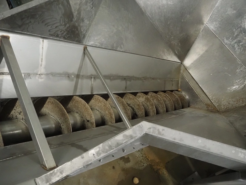 S/s infeed bunker with elevating outfeed screw, tier: 230 mm, screw width: 320 mm, total dimensions: 2500 mm x 5950 mm x 4500 mm. Available from January 2026.