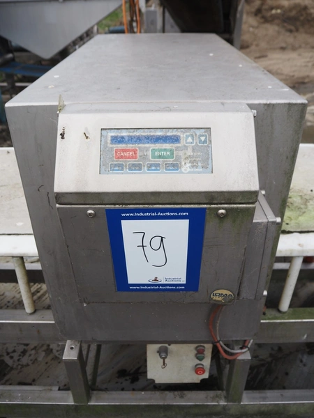 Loma Systems metal detector, clearance: 650 mm x 270 mm, plastic belt, belt width: 600 mm, total dimensions: 4200 mm x 1200 mm x 1300 mm. Technical condition unknown.