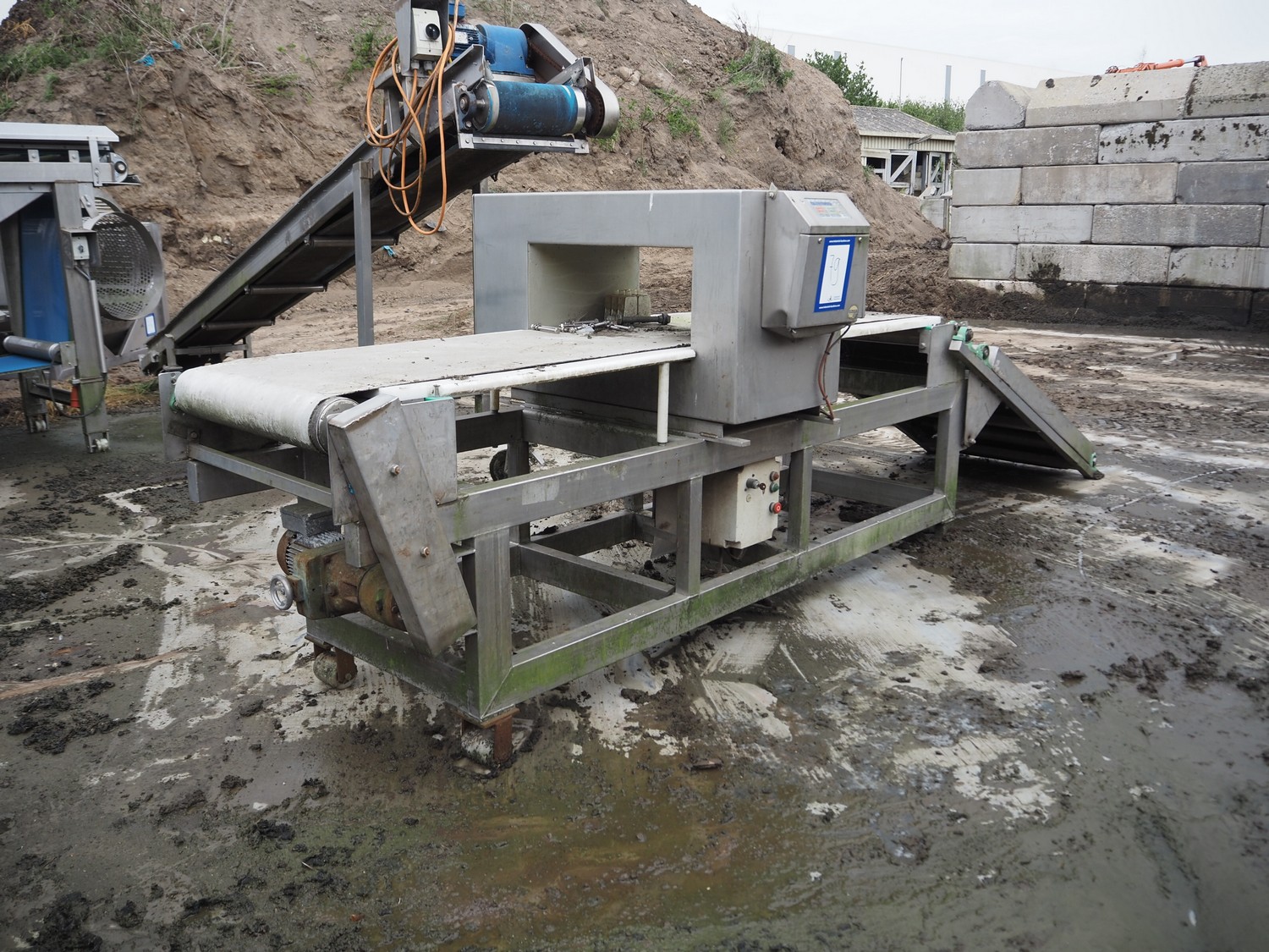Loma Systems metal detector, clearance: 650 mm x 270 mm, plastic belt, belt width: 600 mm, total dimensions: 4200 mm x 1200 mm x 1300 mm. Technical condition unknown.