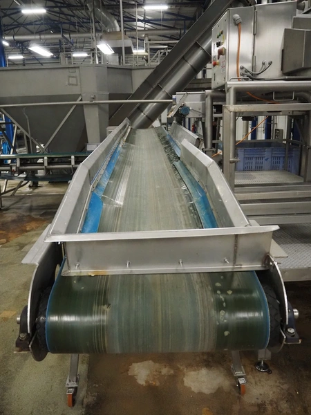 Mobile transport belt, plastic belt, belt width: 580 mm, total dimensions: 5800 mm x 750 mm x 1750 mm. Available from January 2026.