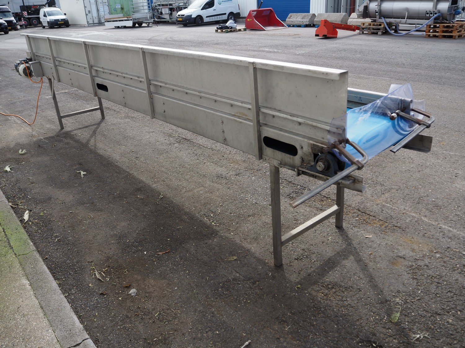 Transport belt, plastic belt, belt width: 600 mm, total dimensions: 5500 mm x 1100 mm x 1300 mm.