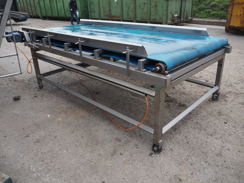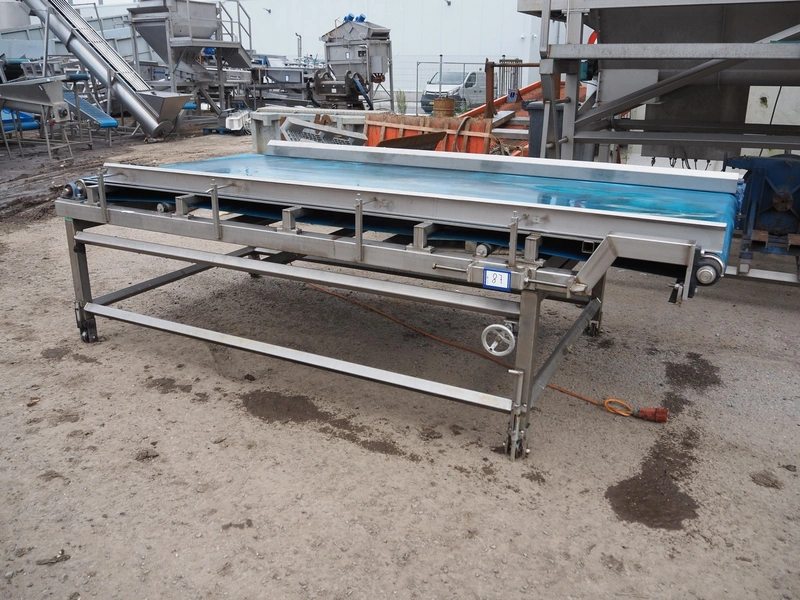 Mobile transport belt, plastic belt, belt width: 1320 mm, total dimensions: 3200 mm x 1700 mm x 1100 mm.