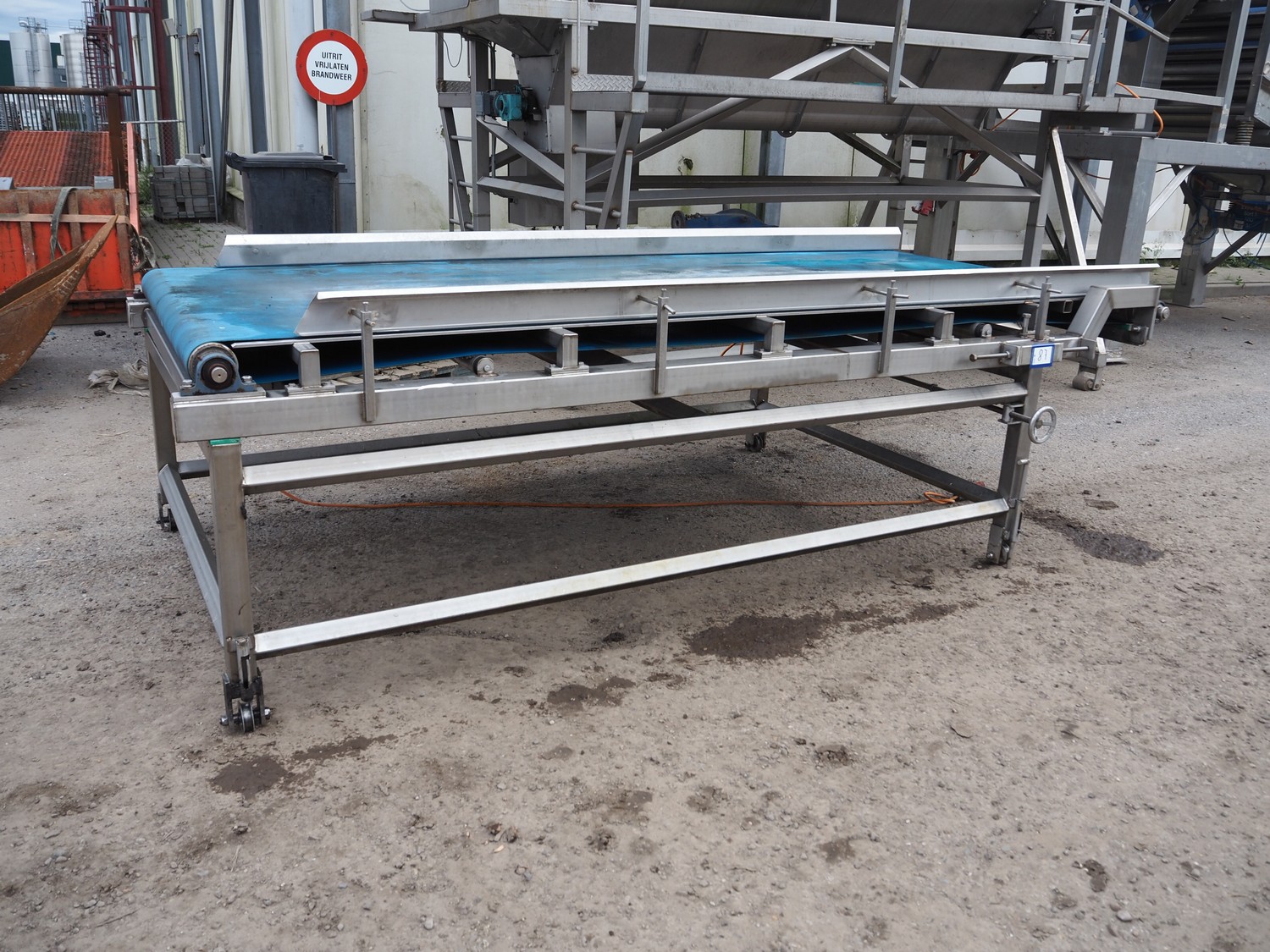 Mobile transport belt, plastic belt, belt width: 1320 mm, total dimensions: 3200 mm x 1700 mm x 1100 mm.