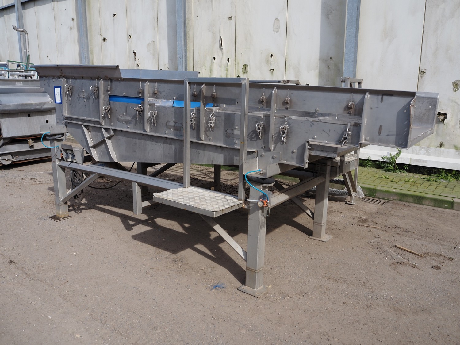 Vibrating gutter with s/s work platform, gutter width: 1020 mm, total dimensions: 4150 mm x 2800 mm x 1750 mm.
