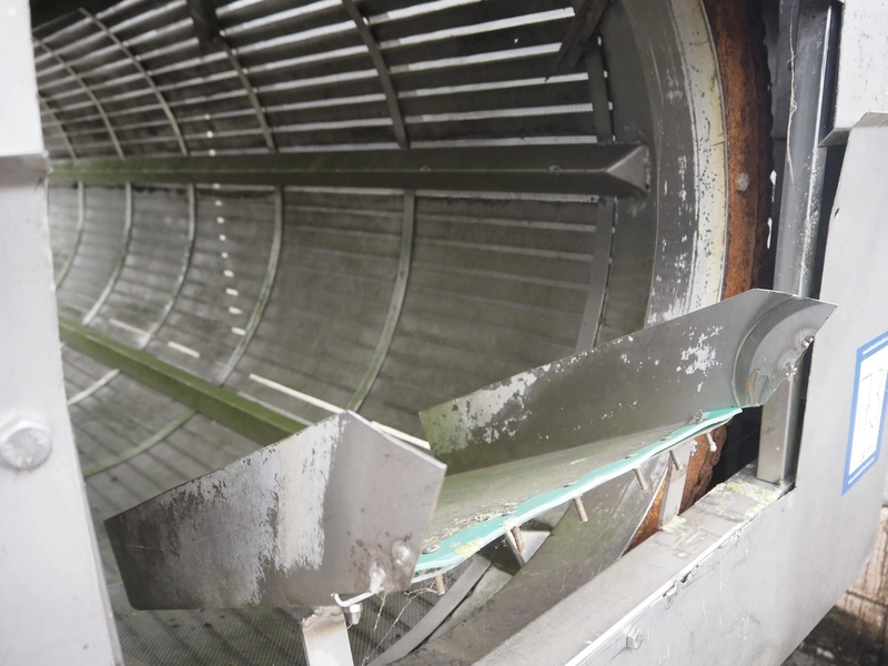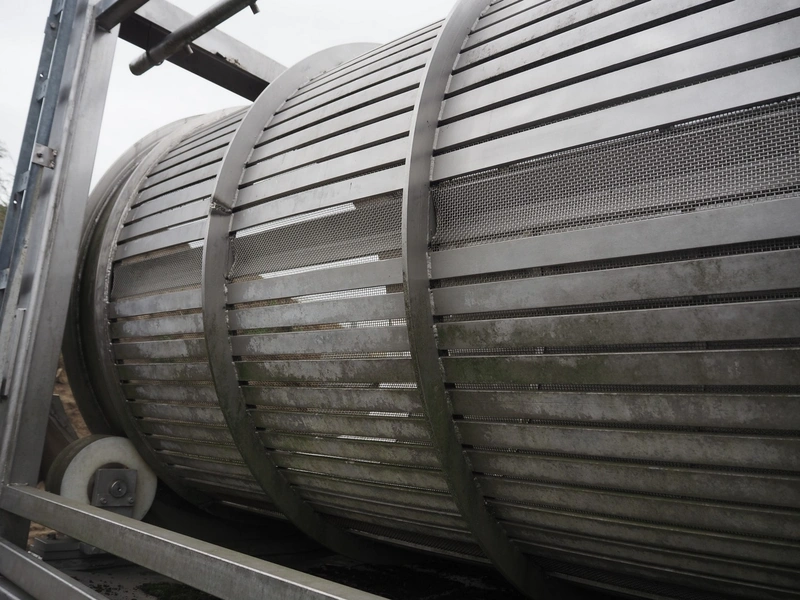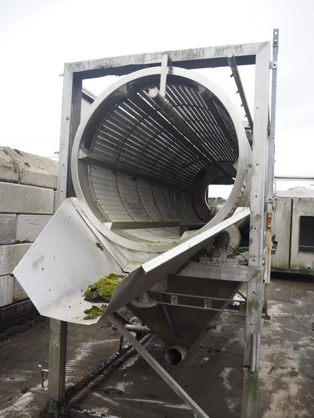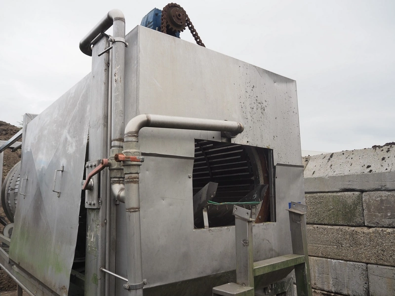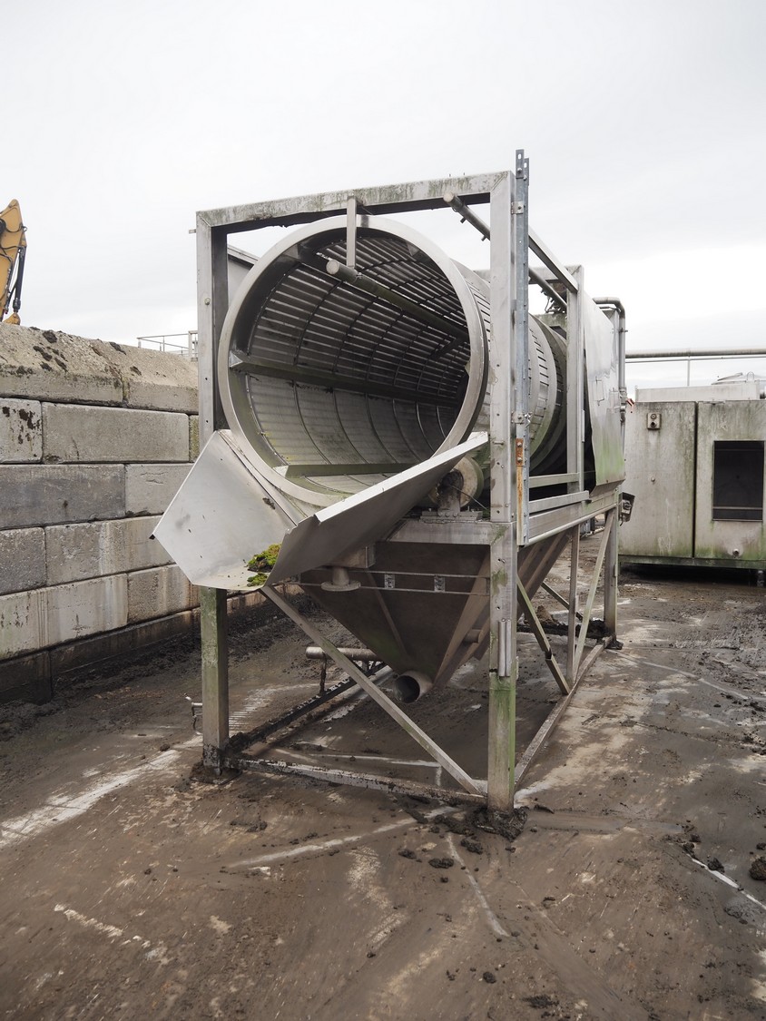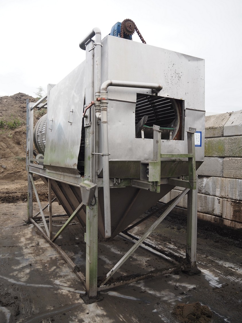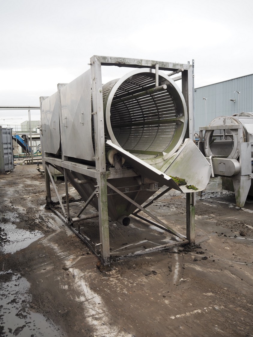 S/s washing drum, diameter drum: 1200 mm, length drum: 4050 mm, total dimensions: 5400 mm x 1600 mm x 2900 mm.
