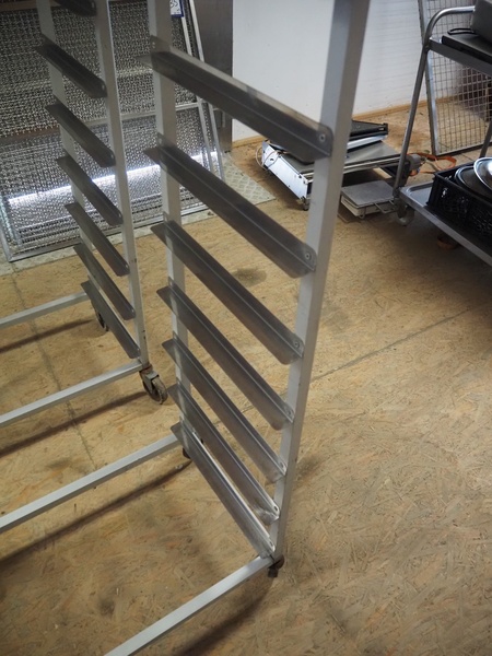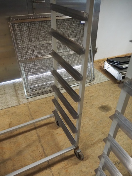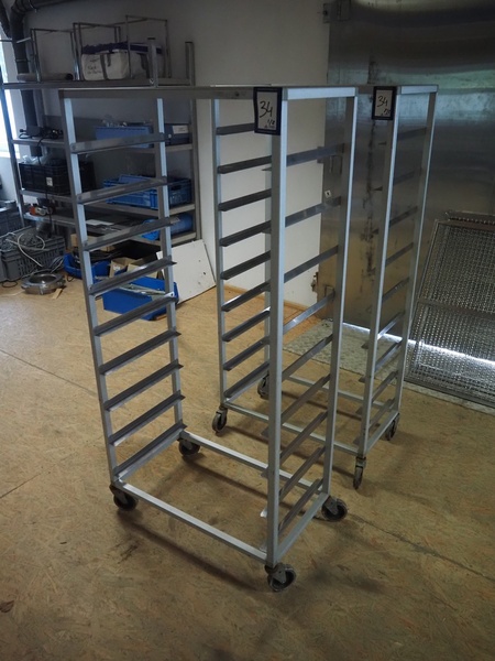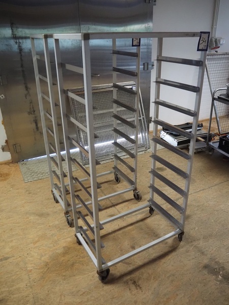 2 s/s trolleys, (2x) 9 floors, floor dimensions: 690 mm x 420 mm, total dimensions: 740 mm x 420 mm x 1540 mm.