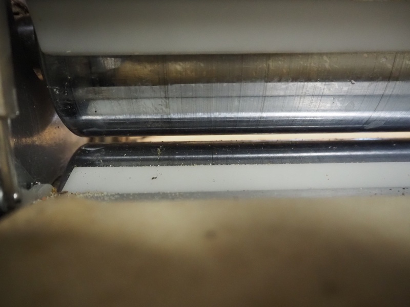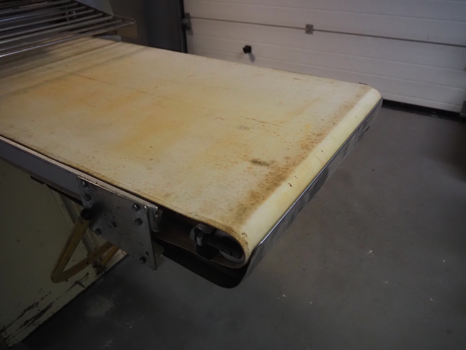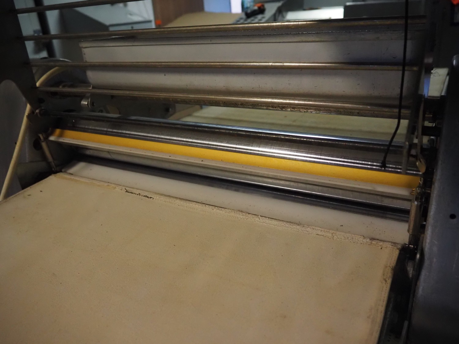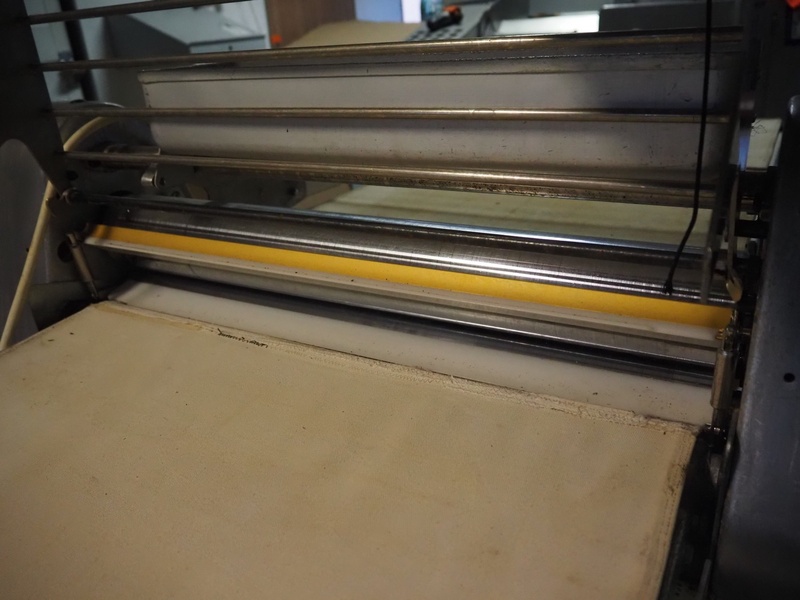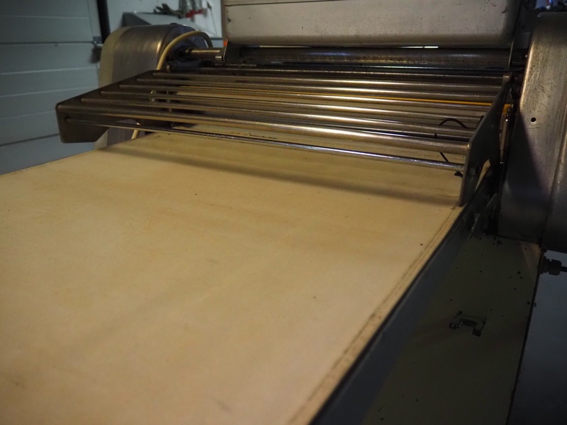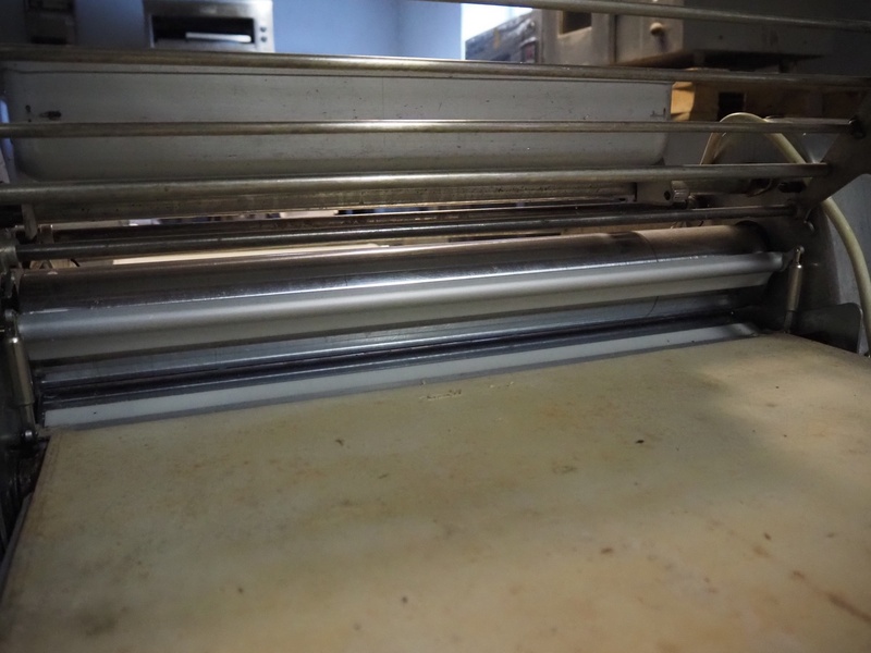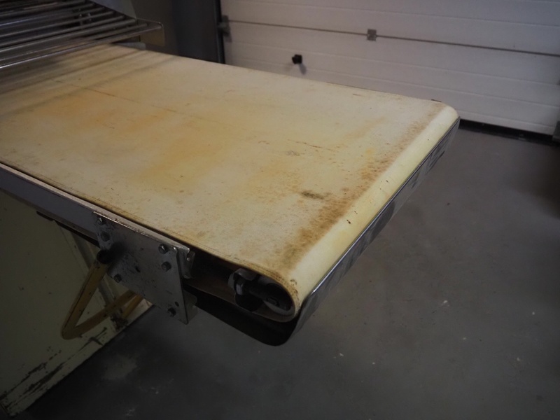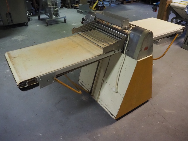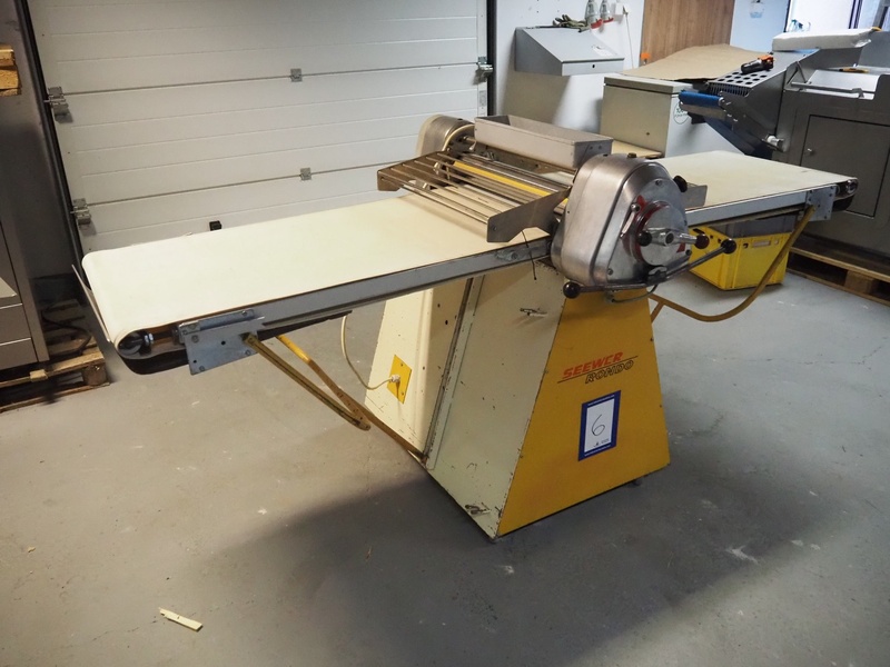 Seewer Rondo mobile dough sheeter, type: Svn-Aut, model: 8-604, series: 6.6, machine number: 466, 230 V, 1 Ph, 50 Hz, 1.1 kW, cloth belt, belt width: 600 mm, total dimensions: 2500 mm x 900 mm x 1140 mm.