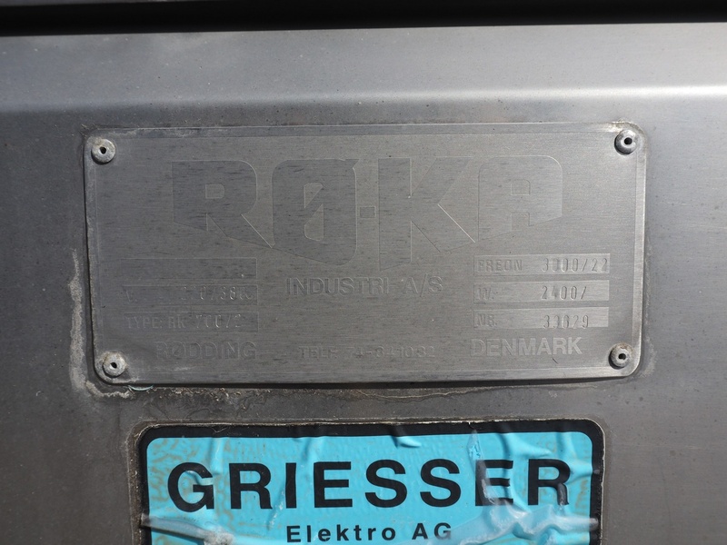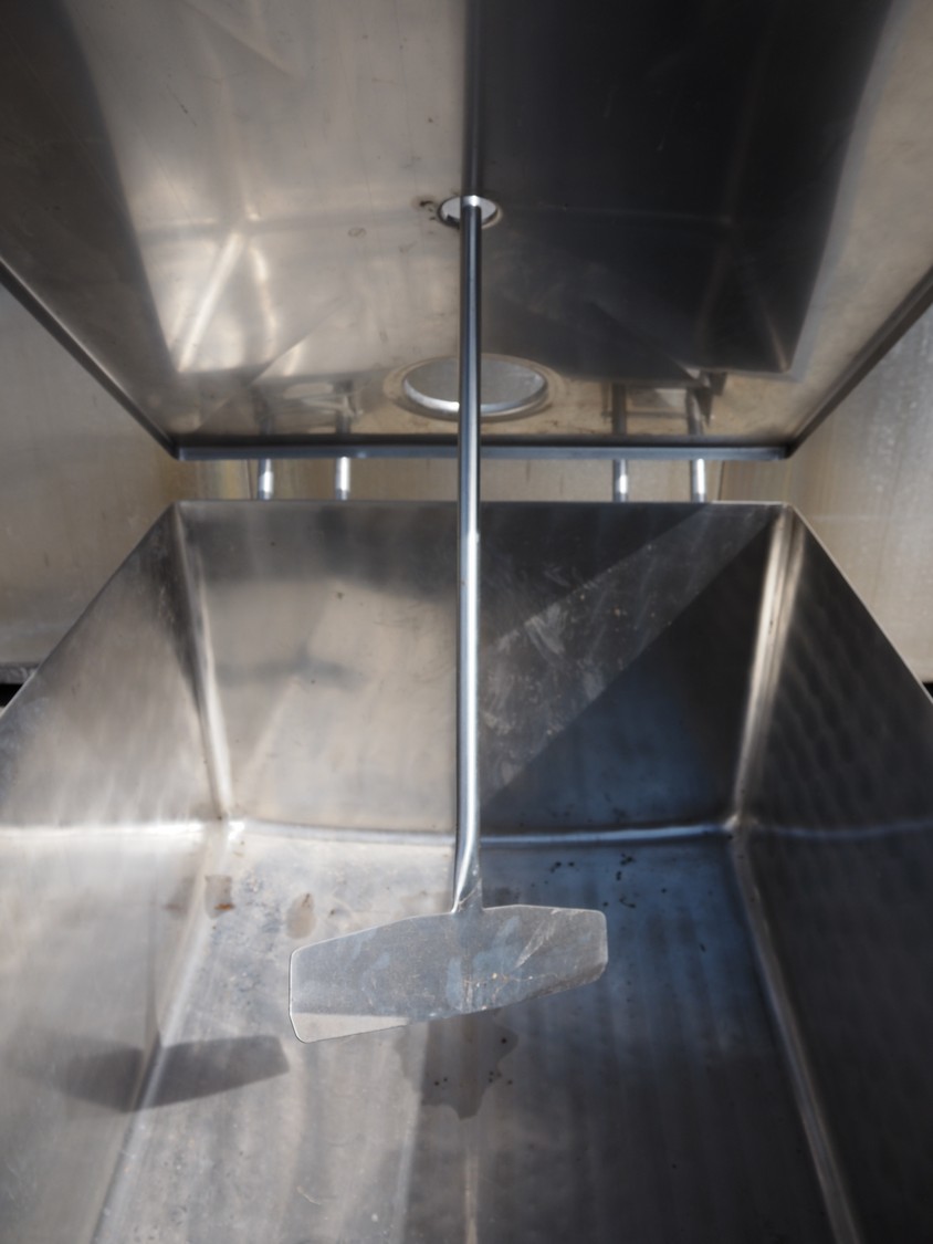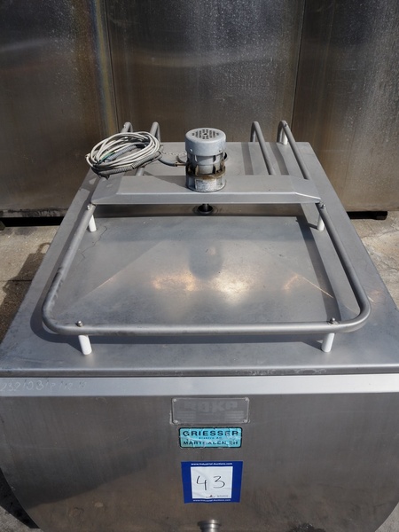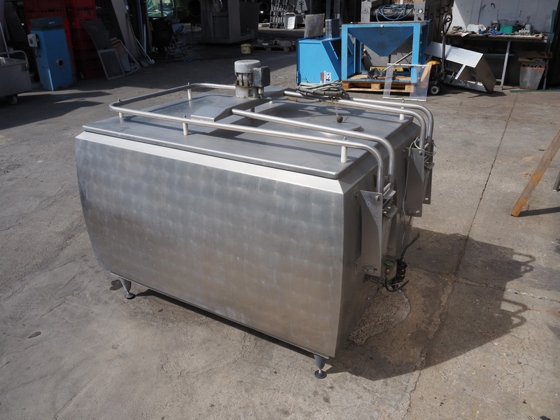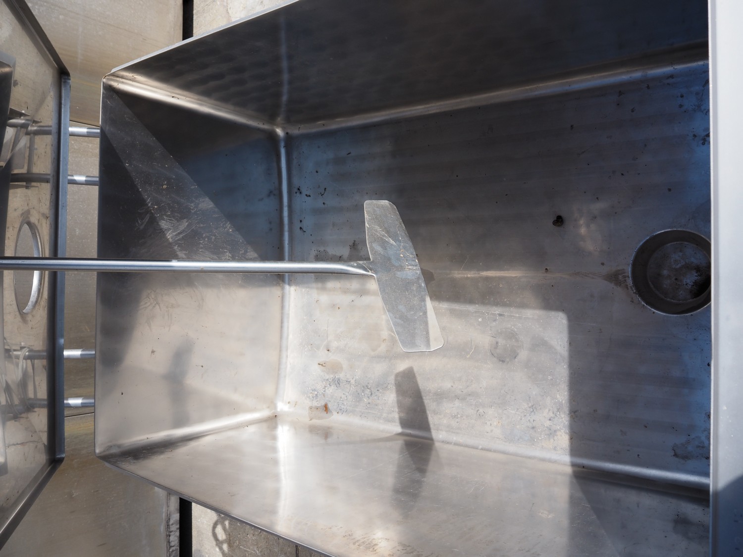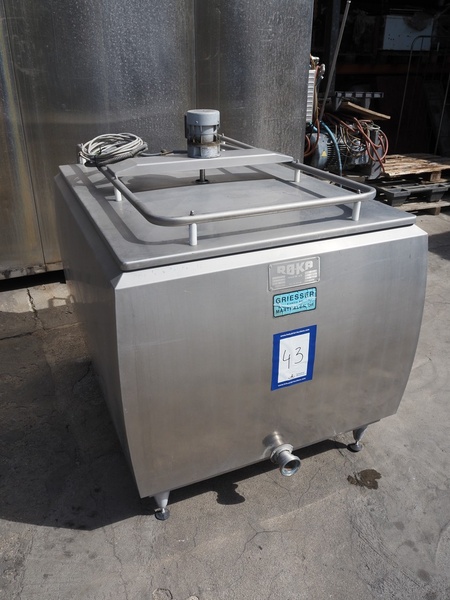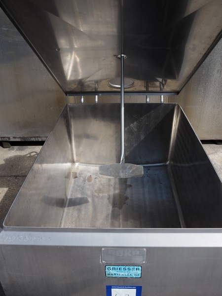 Roka s/s tub with agitator, type: RK 700/2, number: 33629, 220/380 V, 2400 W, capacity: 700 liter, dimensions: 1000 mm x 1440 mm x 1250 mm.