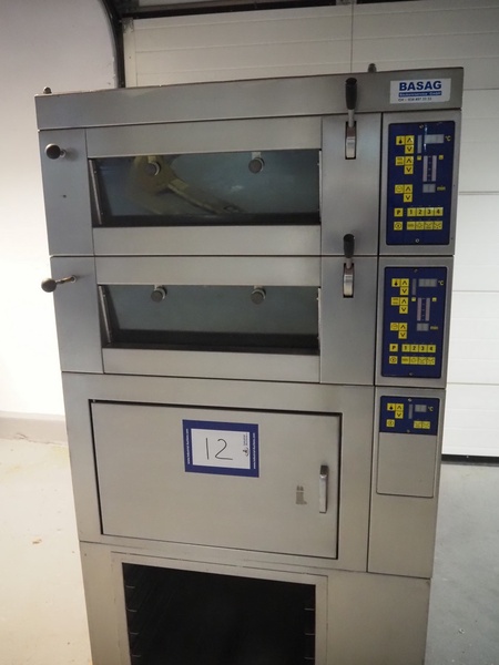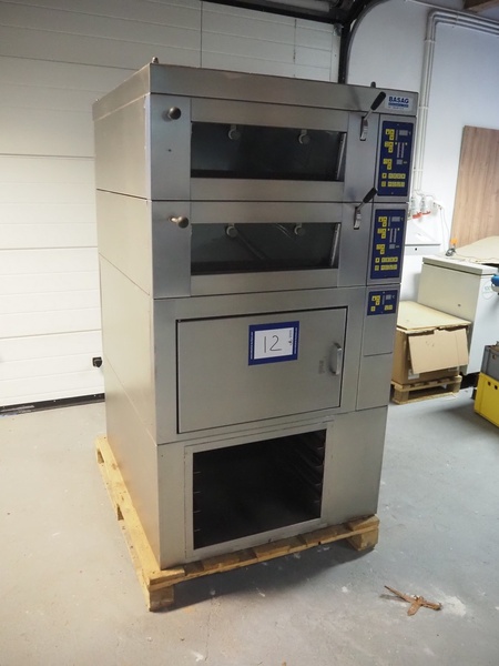 Bafag deck oven, type: G10M, number: 071 829, year of construction: 6.94, 400 V, 3 Ph, 1.8 kW, 5 floors, dimensions each floor: 690 mm x 540 mm, (2x) deck oven, type: GN10, number: 071 829, year of construction: 6. 94, 400 V, 3 Ph, 6 kW, total dimensions: 1100 mm x 960 mm x 770 mm.