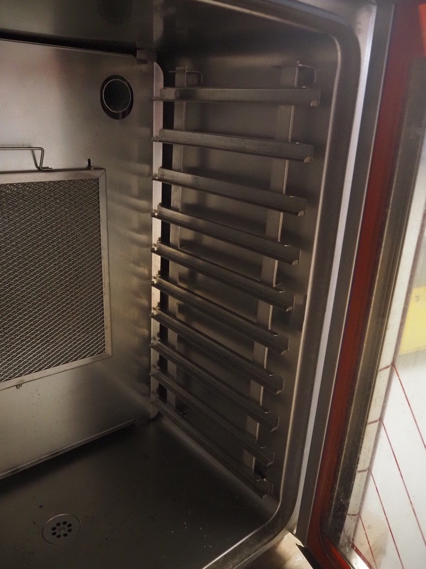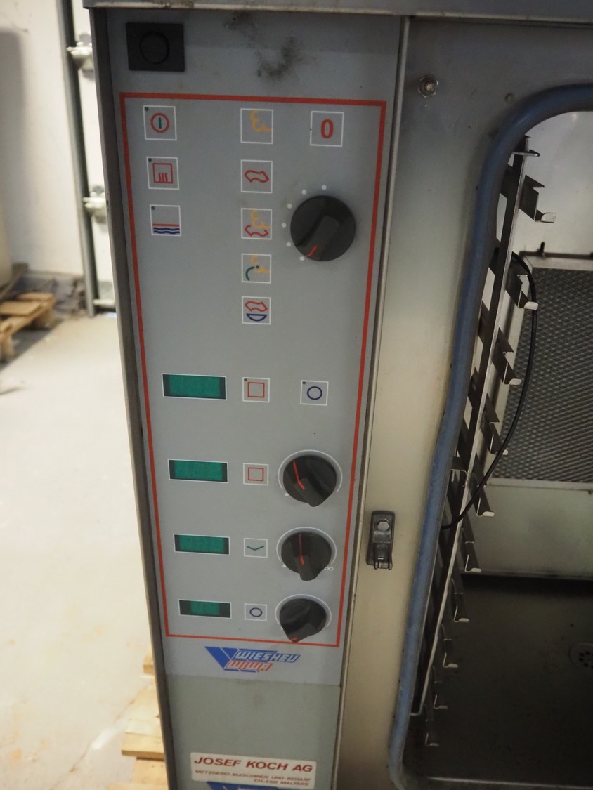 Wiesheu GmbH combi steamer, type: G10M, number: 9214, year of construction: 1993, 380 V, 50 Hz, 14.5 kW, 10 floors, floor dimensions: (10x) 530 mm x 330 mm, total dimensions: 910 mm x 760 mm x 910 mm.