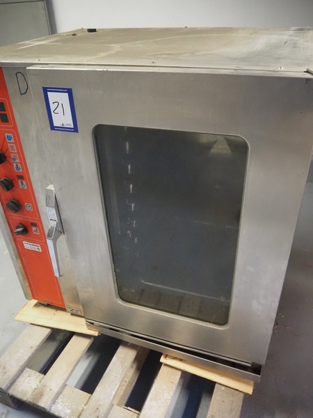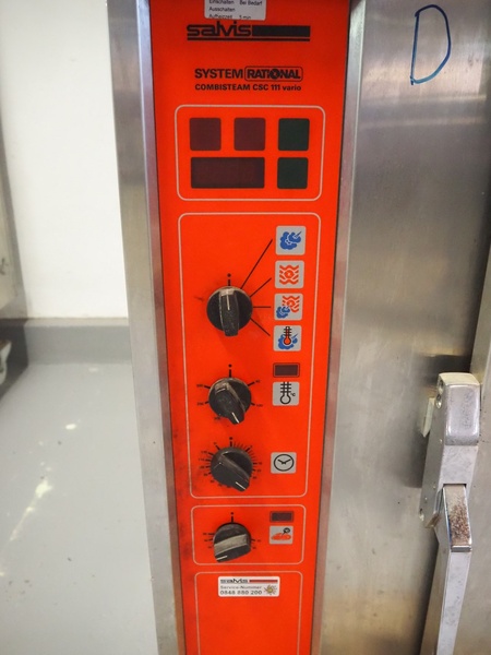 Salvis/Rational combi steamer, type: CSC 111 Vario, serial number: 11M88122036, 380 V, 3 Ph, 50 Hz, 18.4 kW, 10 floors, floor dimensions: (10x) 330 mm x 500 mm, total dimensions: 900 mm x 800 mm x 930 mm.