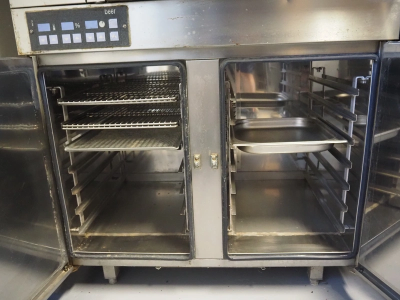 Beer combi steamer and proofer, type combi steamer: 5DB 10-11, machine number: 132274 220, year of construction: 2000, 400 V, 50/60 Hz, 14 kW, 200-600 kPa, 10 floors, dimensions each floor: 300 mm x 530 mm, type proofer: WU 14, machine number: 166004 395, 230 V, 50/60 Hz, 3.1 kW, (2x) 7 floors, dimensions each floor: 325 mm x 500 mm, total dimensions: 925 mm x 800 mm x 1830 mm.