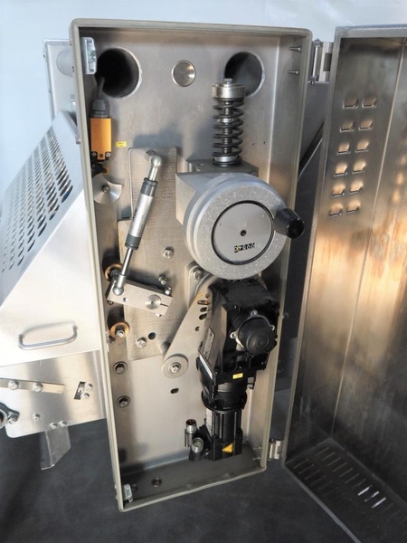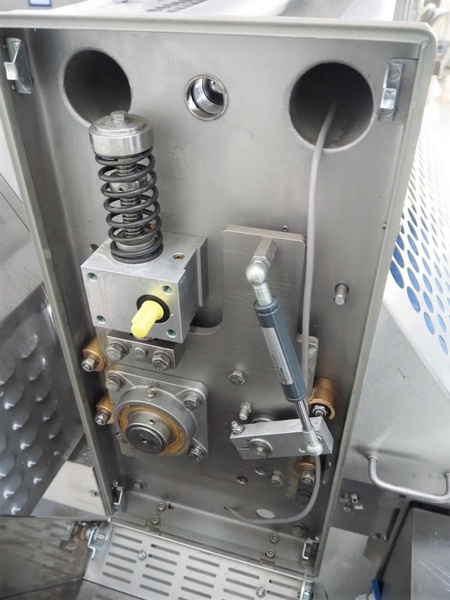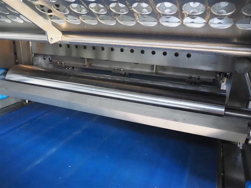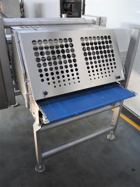 Fritsch dough portioning machine, plastic belt, belt width: 850 mm, total dimensions: 1800 mm x 1600 mm x 1450 mm.