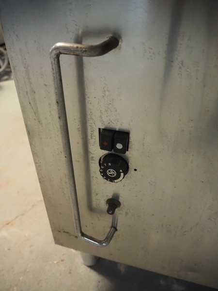 Mareno tiltable roasting pan, model: 8R7D-7G, number: 051084, inside dimensions: 625 mm x 500 mm x 150 mm, total dimensions: 700 mm x 800 mm x 950 mm.