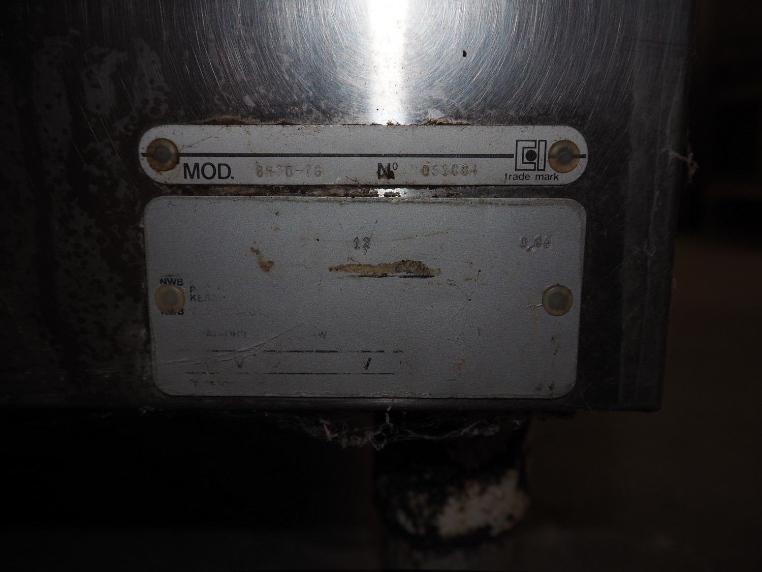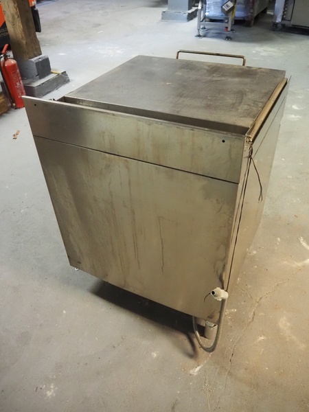 Mareno tiltable roasting pan, model: 8R7D-7G, number: 051084, inside dimensions: 625 mm x 500 mm x 150 mm, total dimensions: 700 mm x 800 mm x 950 mm.