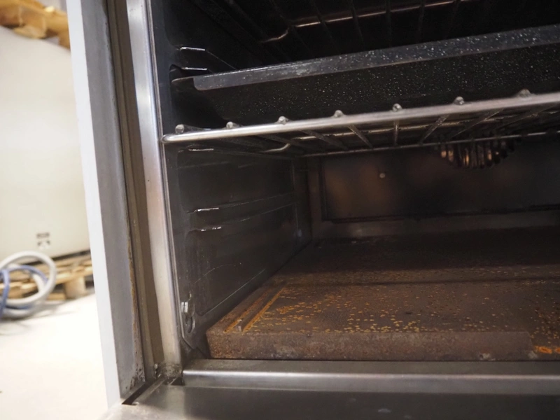 Küppersbusch 4-burner stove with oven, type: KCI 0009, number: 251, 380 V, 3 Ph, 50 Hz, 6.0 kW, 4 floors, dimensions floors: (4x) 520 mm x 370 mm, total dimensions: 700 mm x 700 mm x 880 mm.
