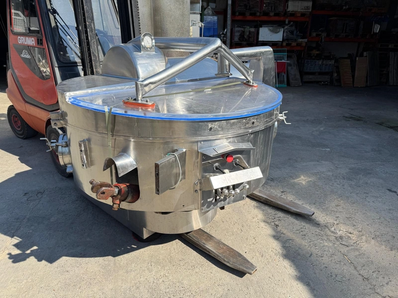 Seydelmann vacuum bowl cutter with lifer for meat bins and ejecter type: K 204 U-Va-K, 400 V, 50 Hz, 78 kW, bowl capacity: 200 liter, s/s bowl, heating or cooling option, dimensions: 1750 mm x 2950 mm x 1550 mm.