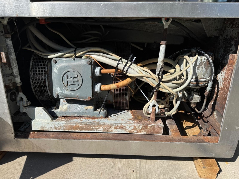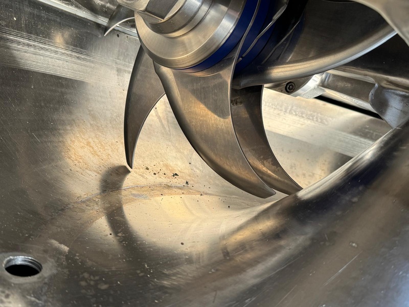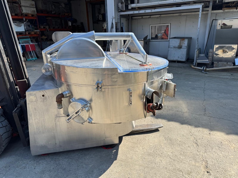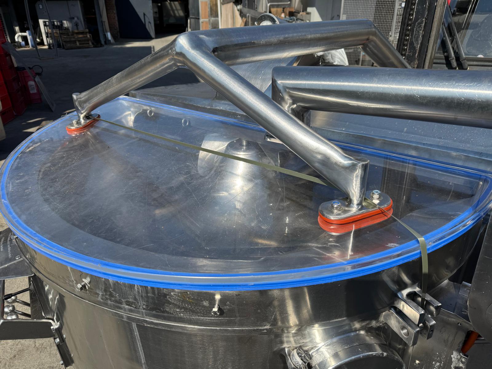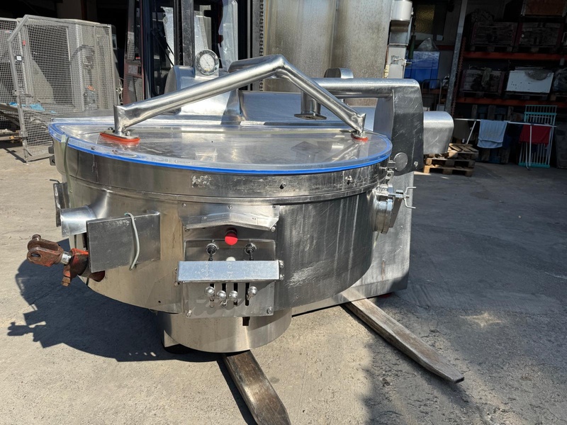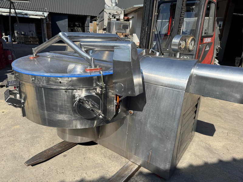 Seydelmann vacuum bowl cutter with lifer for meat bins and ejecter type: K 204 U-Va-K, 400 V, 50 Hz, 78 kW, bowl capacity: 200 liter, s/s bowl, heating or cooling option, dimensions: 1750 mm x 2950 mm x 1550 mm.