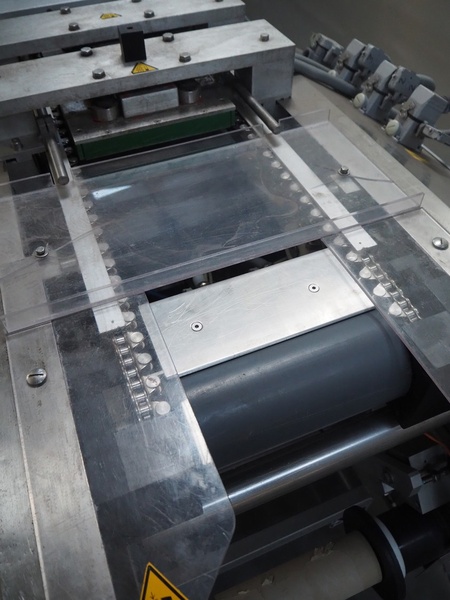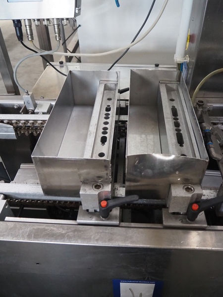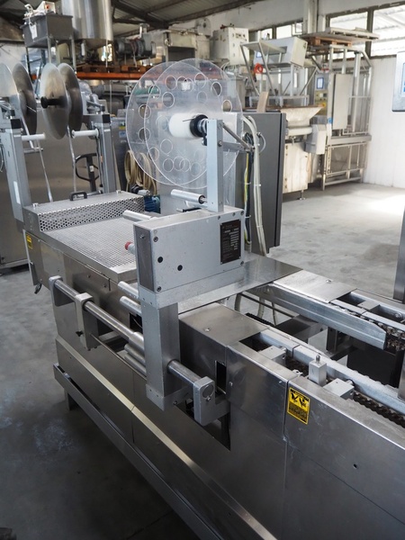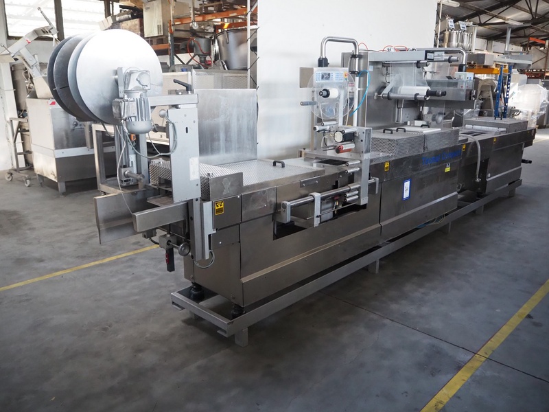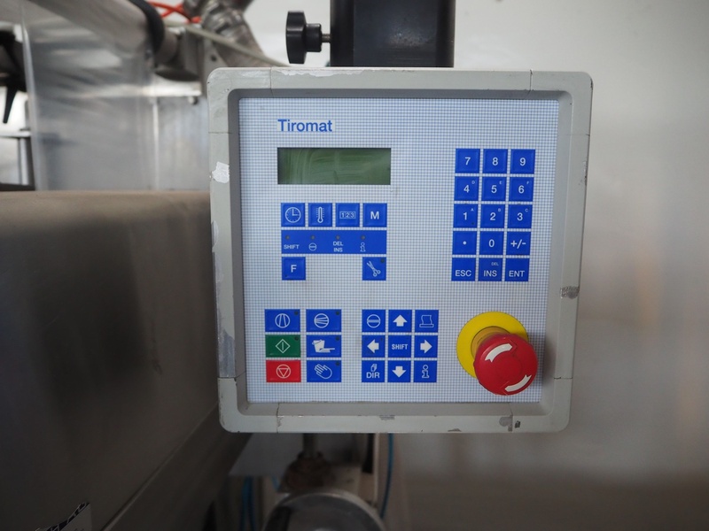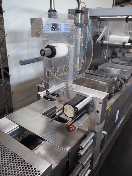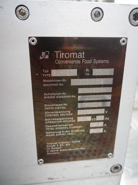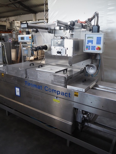 - Tiromat thermoformer, type: Tiromat Compact M280 2.00, serial number: 788.106.1279, 400 V, 3 Ph, 50 Hz, 23.58 kW, foil width: bottom 280 mm and top 270 mm, dye: 190 mm x 240 mm, Tiromat labeller, type: BL-150, machine number: ETI-422N, total dimensions: 7100 mm x 1000 mm x 2050 mm;
