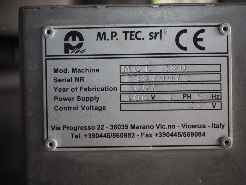 - M.P. TEC. srl lifter for 200 liter meat bins, model: MCL 200, serial number: 22070072, year of construction: 2007, 400 V, 3 Ph, 50 Hz, capacity: 200 kg, lifting height: 2250 mm, total dimensions: 1150 mm x 810 mm x 3020 mm;