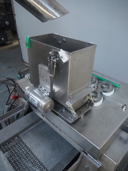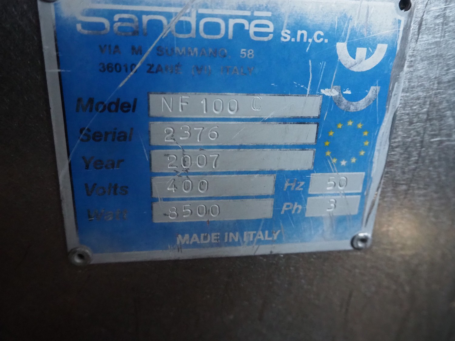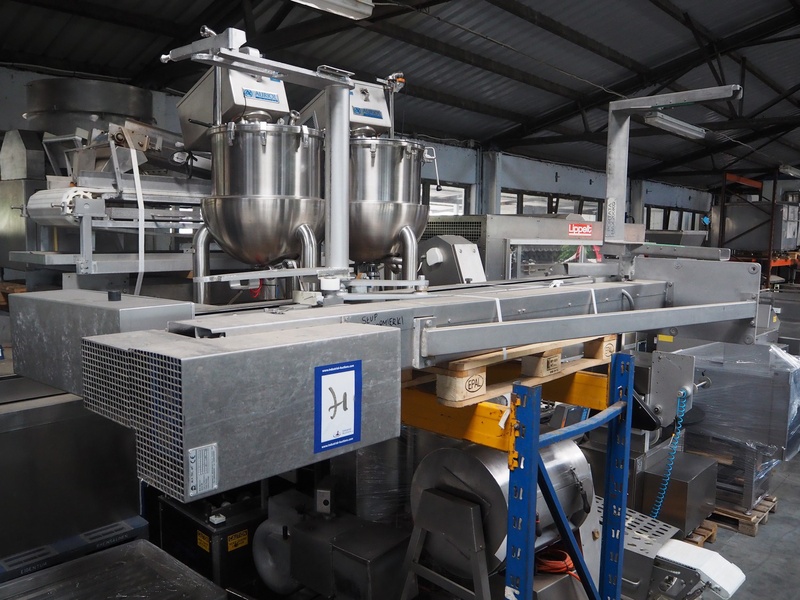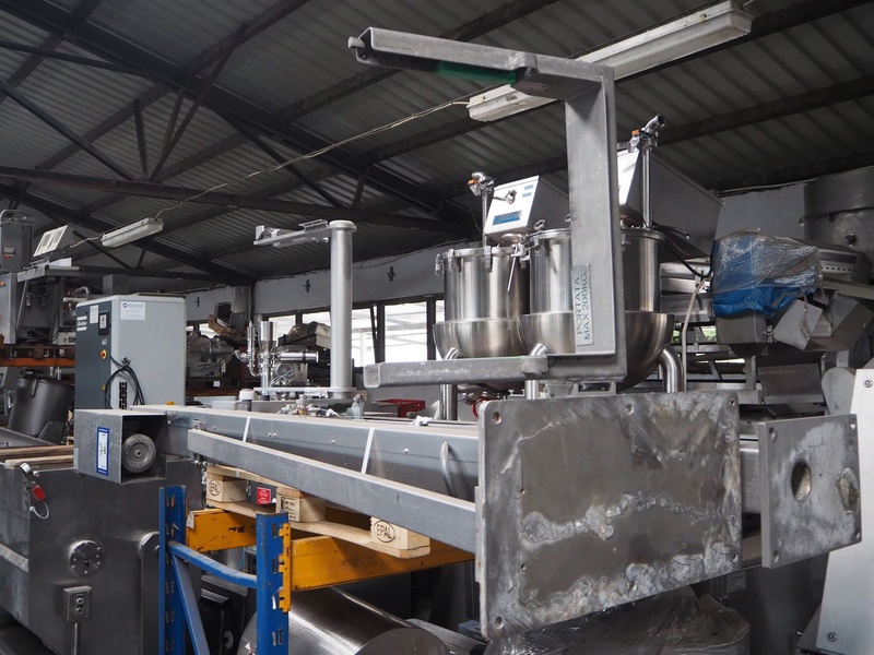 - Sandore gnocchi forming and filling machine, model NF 100 C, serial number: 2376, year of construction: 2007, 400 V, 3 Ph, 8500 W, dimensions: 1450 mm x 1250 mm x 2030 mm, with outfeed machine for stuffed gnocchi, dimensions 900 mm x 1340 mm x 1720 mm, and outfeed machine for normal gnocchi, 870 mm x 1450 mm x 2030 mm;
